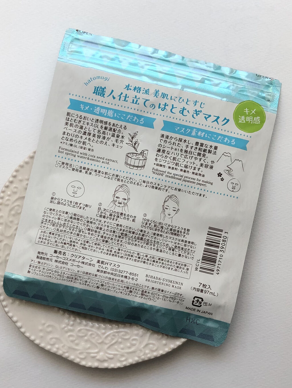 - 肌にうるおいと透明感をあたえるハトムギエキスを厳選配合。 手すき和紙製法の国産やわらかシートが肌にフィットし、毛穴もキュッとした透明感のある肌に導く職人仕立ての自然派マスクです。
