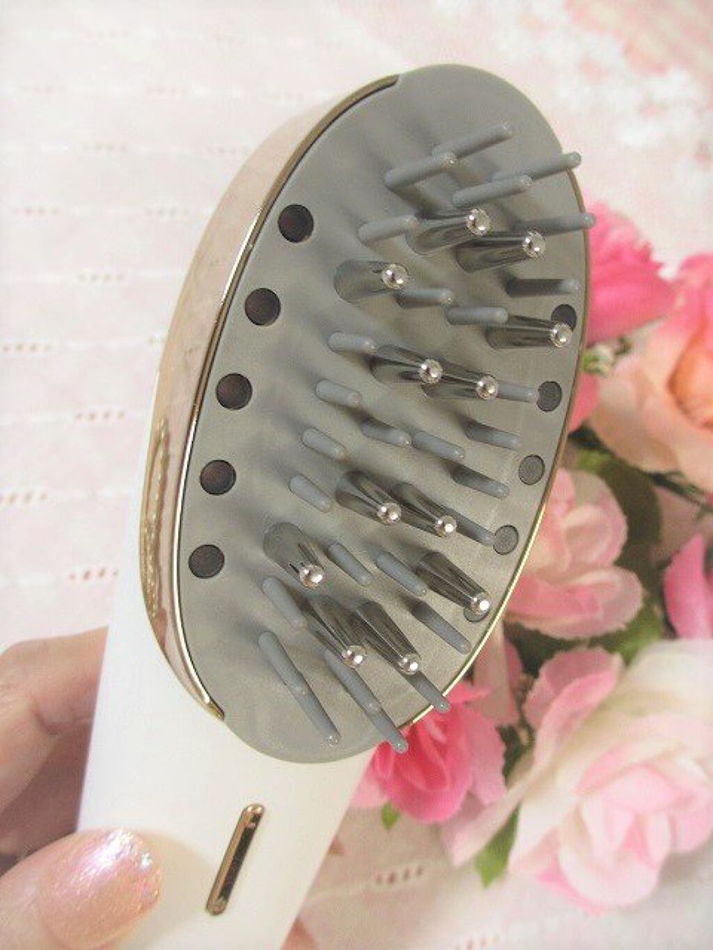 - 頭皮の土台の筋肉、頭筋からケアするヘッドスパ体感のブラッシングリフト美顔器 ■2つのヘッドで、頭皮とお顔それぞれに適したモードでリフトケア※1 ※1 機械を上に動かすこと 1, SCALPモード 12本の電極ピンから頭皮専用の独自の低周波EMSを出力し、硬くなりがちな頭筋を刺激します。さらに、ブラッシングしながら毎分約7000回の微細な振動で、頭皮全体をストレッチしていきます。マイクロカレントも同時に出力しながら、低周波と振動のシナジーで効率的なケアが可能に。 2. FACEモード 22本の柔軟なピンで、“多点式”電極が低・中周波EMSを複雑に出力。30種類以上から構成される表情筋に対して、あらゆる方向からEMSを出力し多角的かつ集中的に表情筋を刺激します。さらにマイクロカレントも同時に出力し、表情まですっきりとした印象へ導きます。 ■アタッチメントを付け替えるだけで自動モード切り替え マグネット式のブラシアタッチメントを装着すると自動で識別しモード切り替え。難しい操作をすることなく簡単につけることができ、すぐにケアを始められます。 ■ドライでもお風呂でも使える設計 コンパクトで軽量。持ち運びにも便利なので、人と会う直前にさっと取り出し、すぐに引き締めケアをすることも可能。IPX5相当の防滴仕様なので、お風呂で使用することも。身体が温まった状態で使用することで効率的にケアできます。