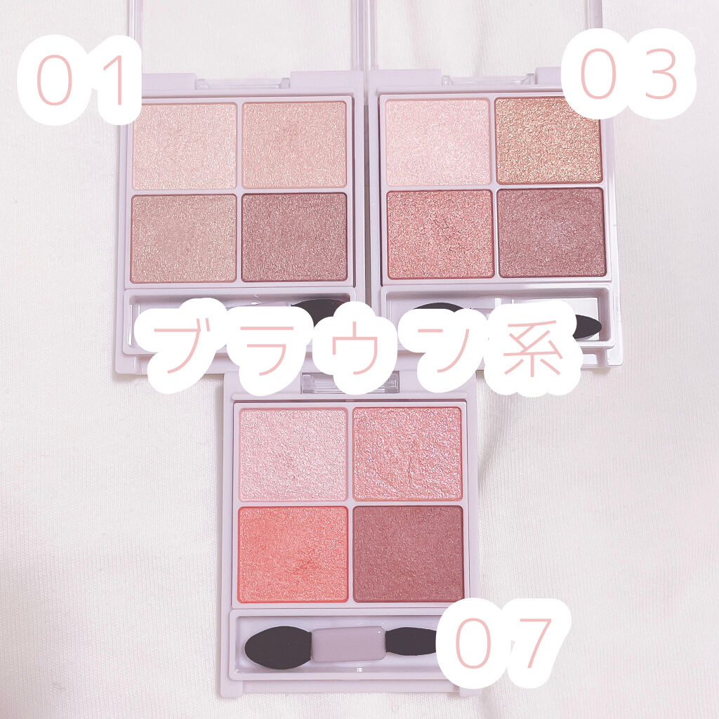 透明感溢れる4色構成のアイシャドウが肌なじみが良く艶っとした仕上がりで使うとはまってしまいます😍♥️♥️ お値段も¥825とお試ししやすい価格になっているので是非ぜひcheckしてみてくださいね!!😌 透けるラメ×透けるマットの組み合わせがとにかく可愛くてオシャレで1度使うと一軍アイシャドウの仲間入りになります✨✨