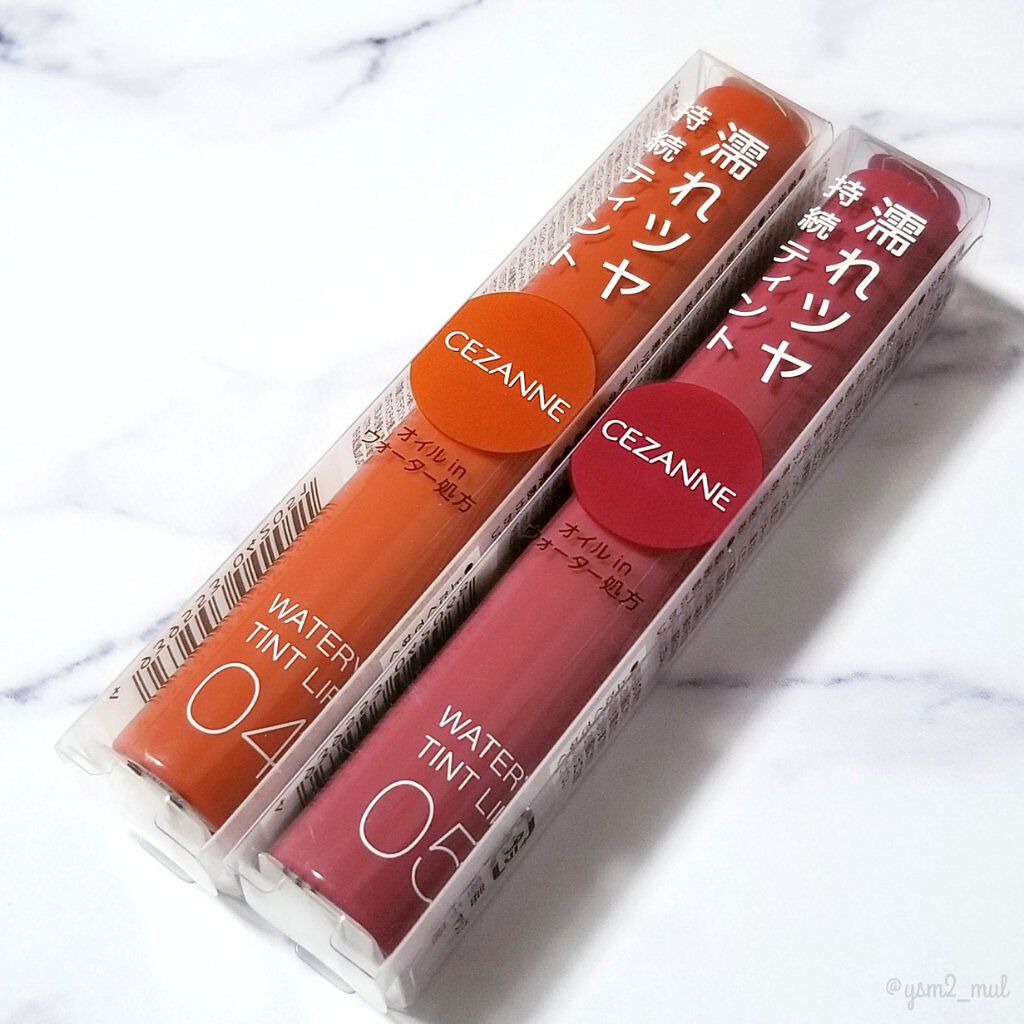 - ツヤ×色×潤いをキープする、セザンヌの新濡れツヤリップ みずみずしい濡れツヤ感ある仕上がりで、発色とツヤが長続きするティントリップです。ティントの発色を透明のベールで覆うリップコートのような処方で、ツヤ感と色をキープします。さらに、唇表面のべたつきは少なく、しっとり潤うオイルinウォーター処方を採用しています。