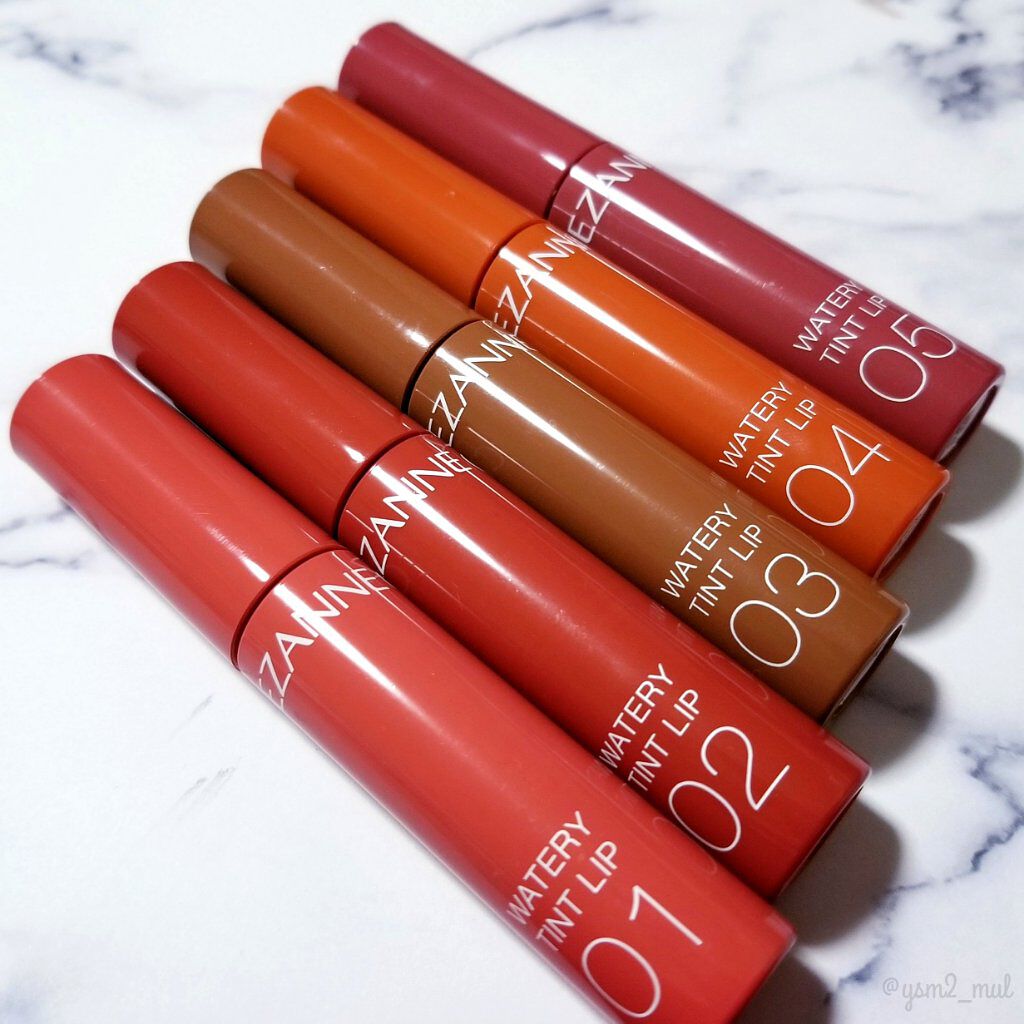 CEZANNEのウォータリーティントリップから新色が出た〜(*˘︶˘*).。.:*♡ということで全色スウォッチいってみたいと思います🙌🏻💕濡れたようなツヤが長時間持続するティントルージュ。水に濡れたような軽やかなツヤが持続✨唇に色がフィットし...