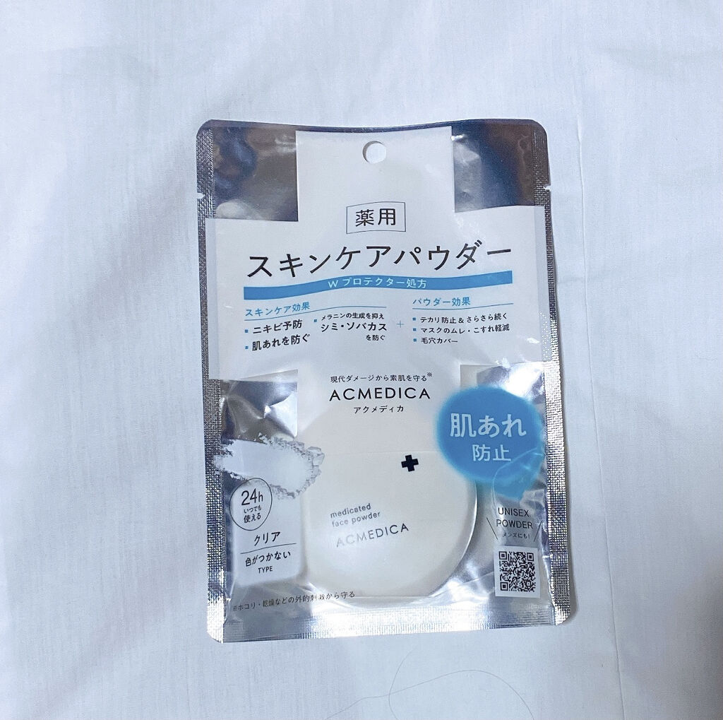 - 【医薬部外品】 マスクによるムレ・こすれ、ニキビetc... 『現代ダメージから素肌を守る』人気の薬用フェイスパウダー【アクメディカ】がリニューアル♪ 持ち運びに便利なミラー付きコンパクトになりました♪ 色がつかない『クリア』タイプです。 ●薬用【肌あれ・ニキビ予防】 ・殺菌有効成分:サリチル酸 ・抗炎症有効成分:グリチルリチン酸ステアリル ●薬用【美白】 ・メラニンの生成を抑え、シミ・ソバカスを防ぐ:プラセンタエキス ●皮脂吸収パウダーでテカリ・べたつきを防ぎ、さらすべ素肌が続きます。 ●ソフトフォーカス効果で、気になる毛穴・凹凸をふんわりカバー。 ●パウダー効果で、マスクによるムレ・こすれや、ホコリ・乾燥などの外的刺激から肌を守ります。 ●美肌をサポートする保湿成分もたっぷり。 ●色がつかない透明タイプ。 洗顔不要でスキンケア後のべたつきケアや、ナイトパウダーとしても。 ●どこでもスキンケアできるミラー&パフ付きコンパクト になりました。 (販売名:薬用パウダーWS10)