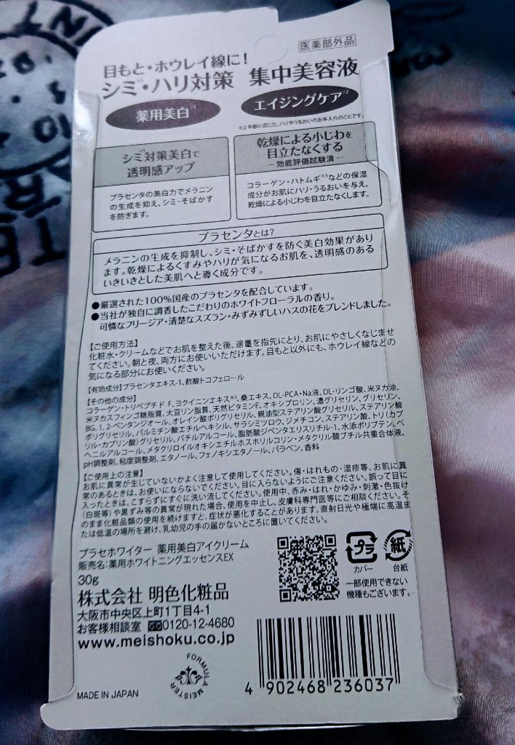 明色化粧品さまよりご提供いただきました!★プラセホワイター薬用美白アイクリーム秋から冬にかけて、乾燥がひどいです。そして、くすみがやばいです。何で、この季節になると調子が悪くなってしまうんでしょうか?そんな危機感を感じていたときに、「プラセン...
