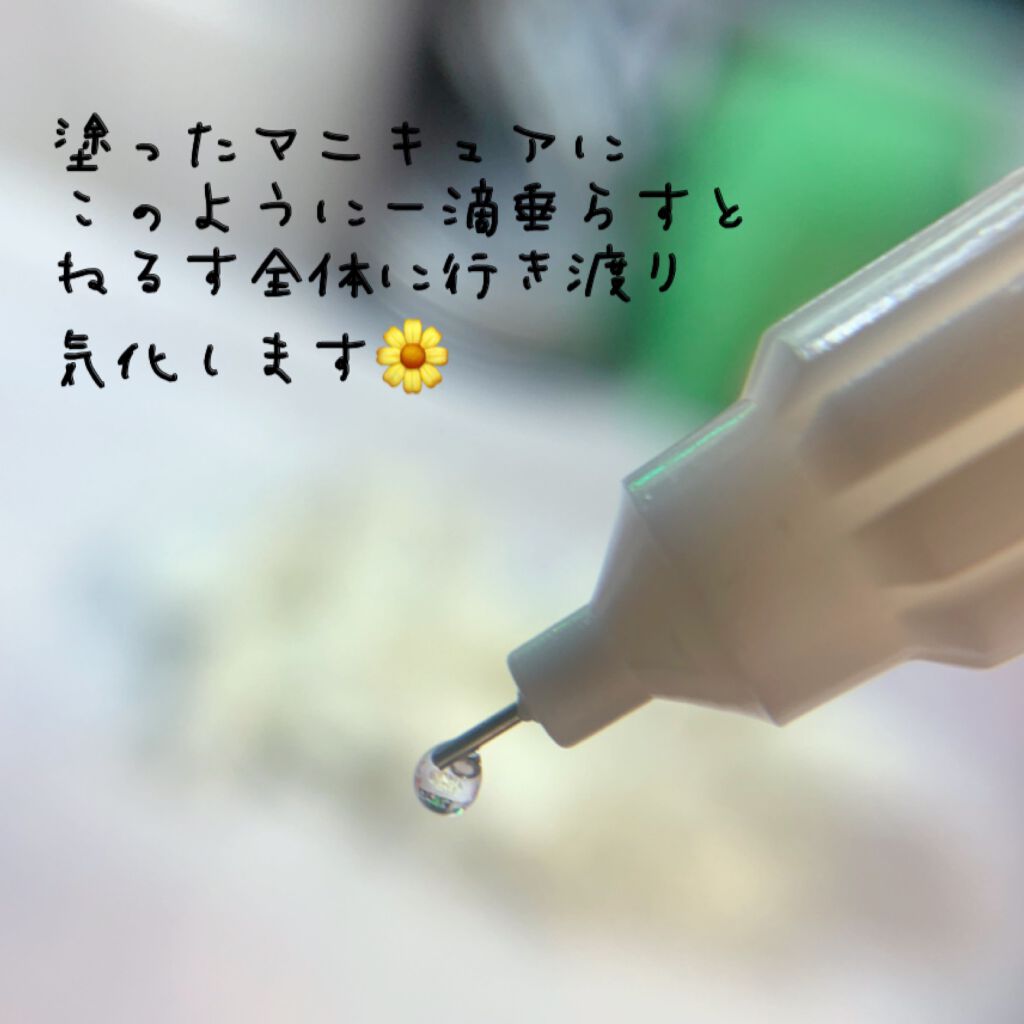 - 1滴たらすだけ!ネイルカラー速乾液。 ネイルの時間短縮や、重ね塗りに便利。 ネイルカラーを塗布後、クイックドライメーカーを1滴たらすと乾燥時間を大幅にカット♪ 乾燥時間に起こりやすい傷やヨレ、汚れを防ぎ、塗った直後の美しい仕上がりを守る便利アイテムです。 2023/4/6~ボトルが使いやすくなってリニューアル