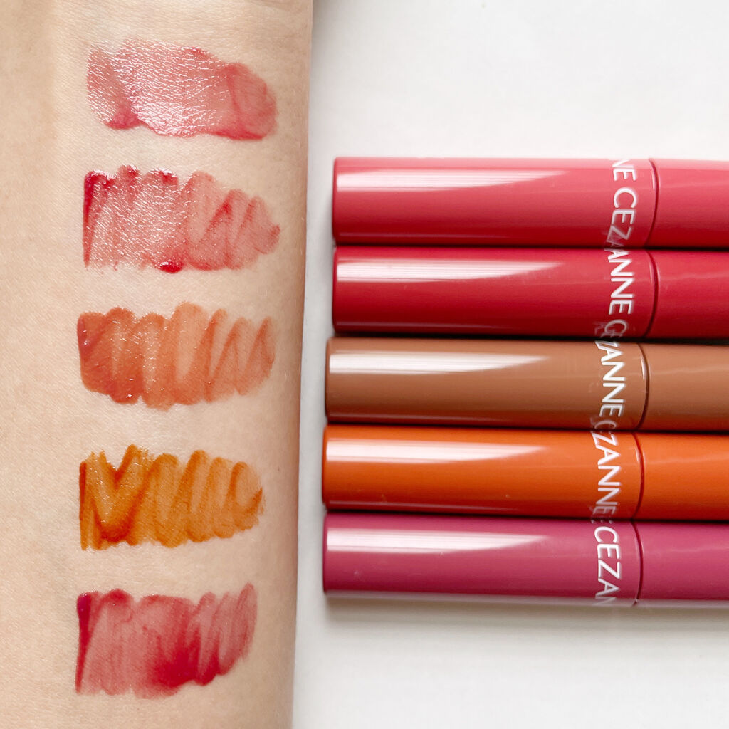 - ツヤ×色×潤いをキープする、セザンヌの新濡れツヤリップ みずみずしい濡れツヤ感ある仕上がりで、発色とツヤが長続きするティントリップです。ティントの発色を透明のベールで覆うリップコートのような処方で、ツヤ感と色をキープします。さらに、唇表面のべたつきは少なく、しっとり潤うオイルinウォーター処方を採用しています。