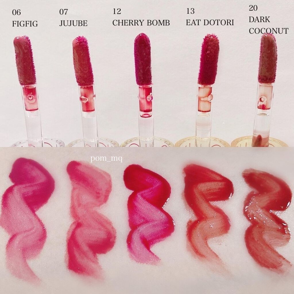 リニューアルしたジューシーラスティングティントの、新しく追加されたジュジュフィグを購入しました〜🥹🩷 発色の仕方がジュワッと、それこそジューシーな感じで可愛いし内側中心に塗布するとグラデーションみたいになって可愛いんです😵💫 色持ちは言うまでもなく、重たくも軽くもない中間な感じが使いやすかったです💭
