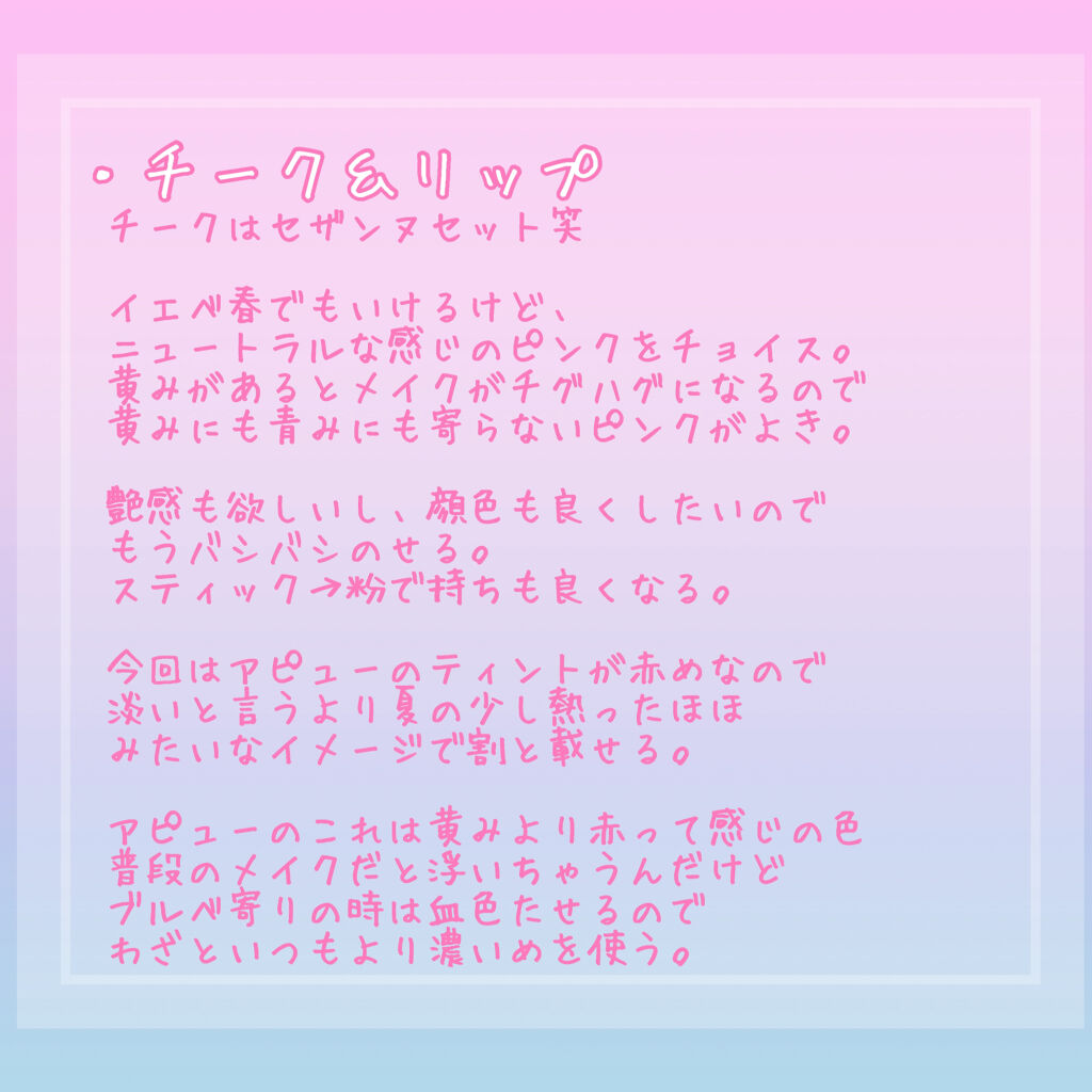 じゅわっとほっぺになりたくてピンク系も欲しかったんですけど、行ったお店には無かったのでとりあえず赤にしました朱赤っぽく見えなくもないけど、肌に出すど赤ピンクっぽいので黄みを感じなくてよかった(黄みが入るととても似合わなくなります…)パウダーチ...