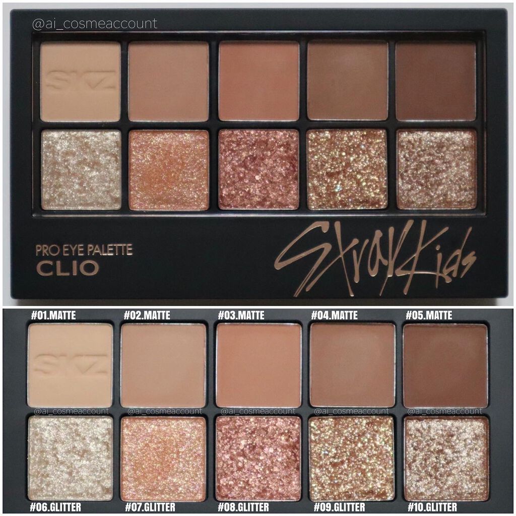 [CLIOPROEYEPALETTE全色スウォッチ]CLIOプロアイパレットの1号〜10号と、StreyKidsコラボ限定色の100号・101号の全色スウォッチです。フラッシュ撮影の全色スウォッチはコチラ↓https://lipscosme....