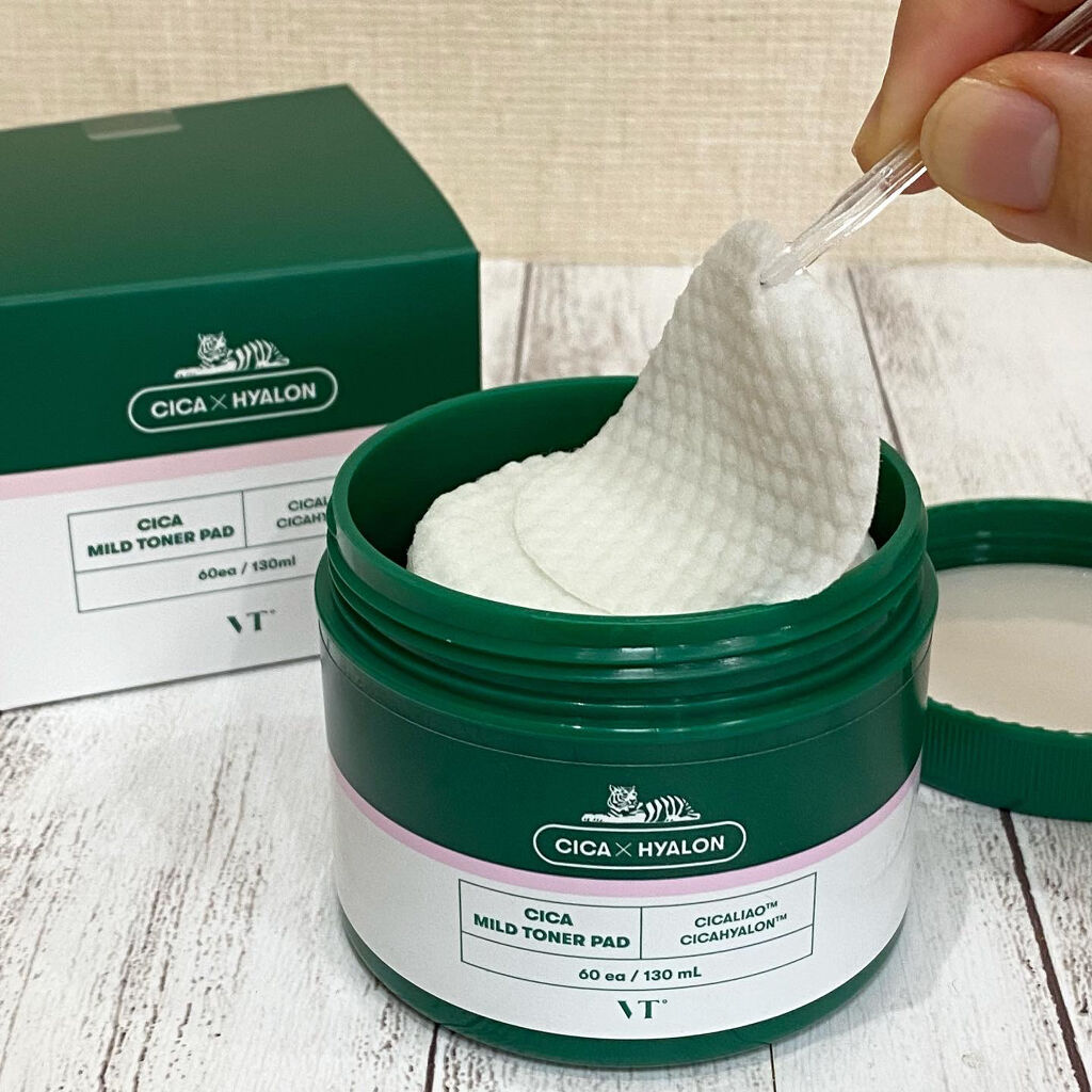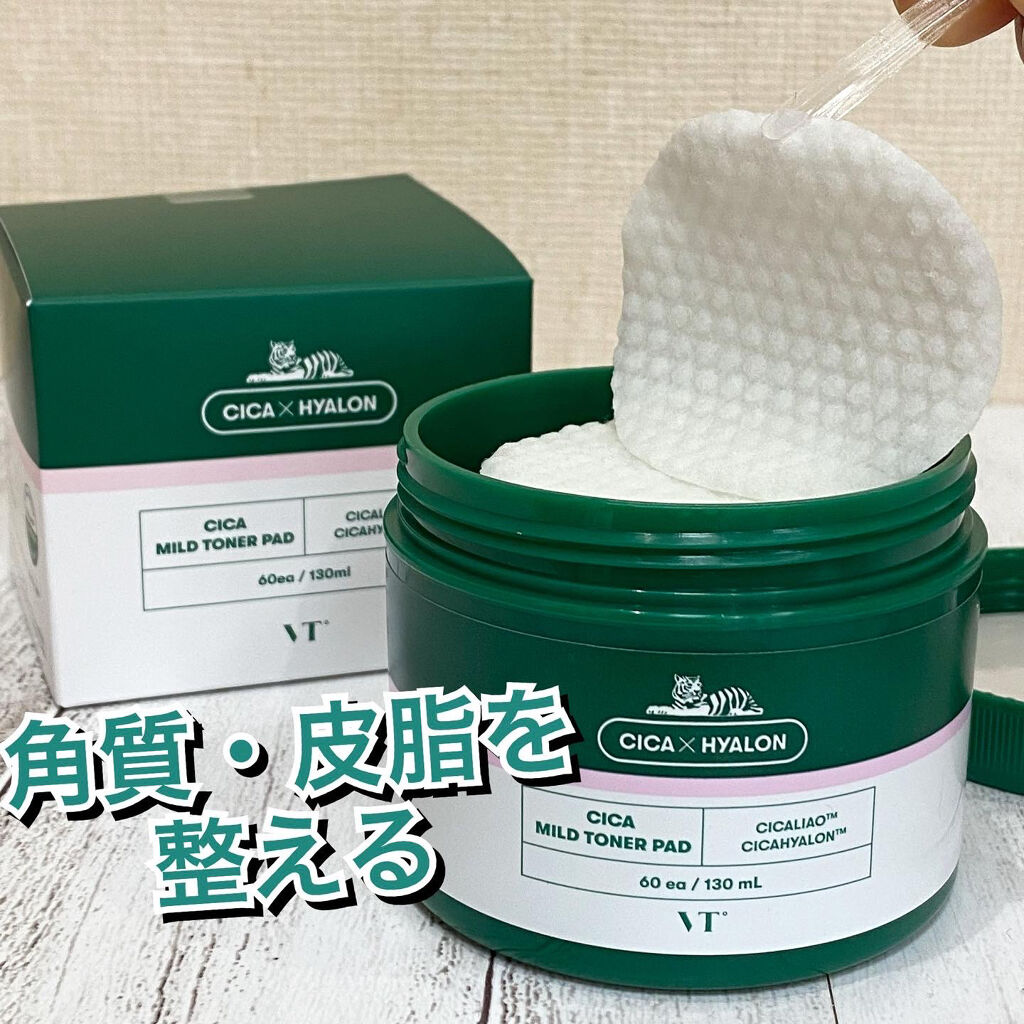 VTの緑パケのパッド初めて使いました💚先日投稿したアゼライン酸系🔴と比べてみたくて手に取ったのがこの【VTCICAマイルドトナーパッド🟢】実はまだ使ってませんでした…💦で、さすがVT…!という使い心地の良さです。最近はどこでも取り扱いがあって...