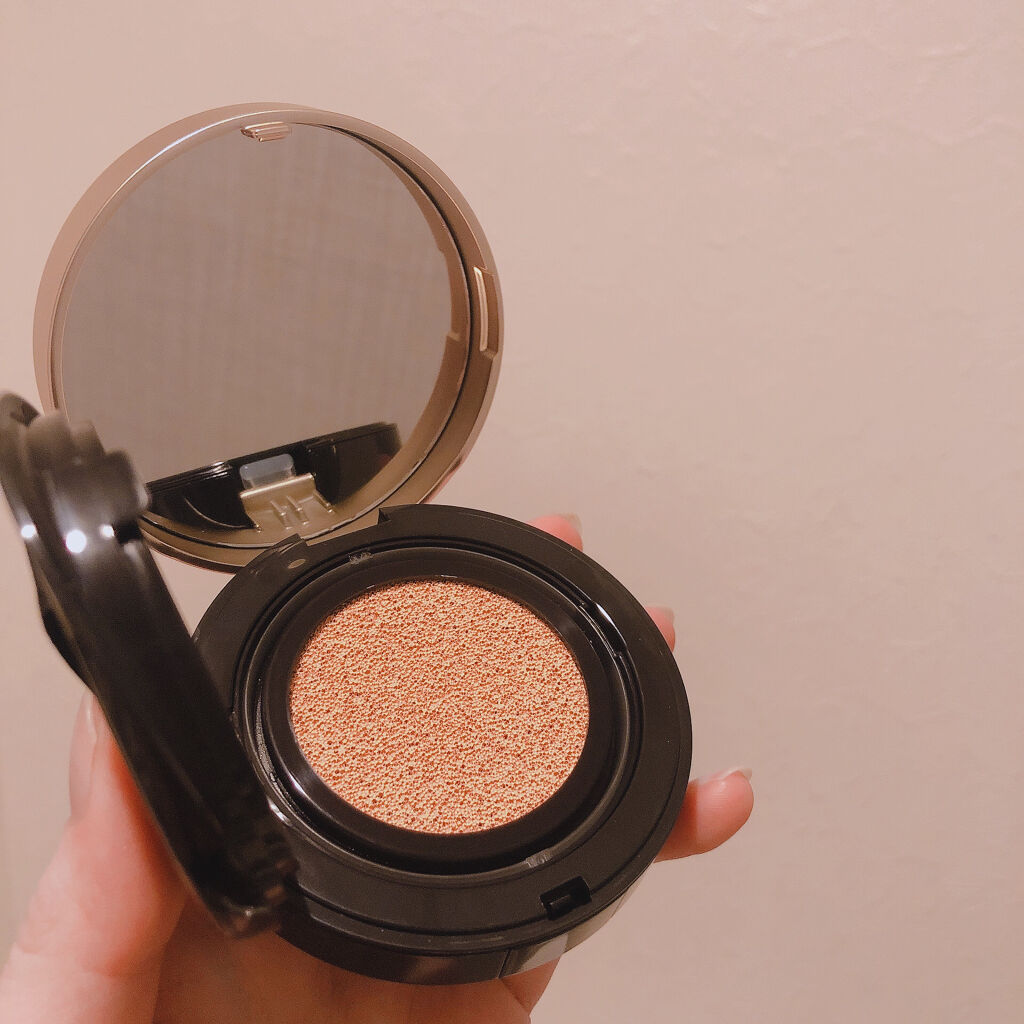 リピート3回目で大のお気に入り💓 適度にカバーしながらもナチュラルで、隠してます!というより、元から肌綺麗です!という感じに仕上がります☺️ テクスチャーはみずみずしく、クッションなのに全然乾燥しません。 むしろもちっとした肌になります。 肌にぴたっと密着して崩れにくいので、マスクとも相性いい🙆♀️