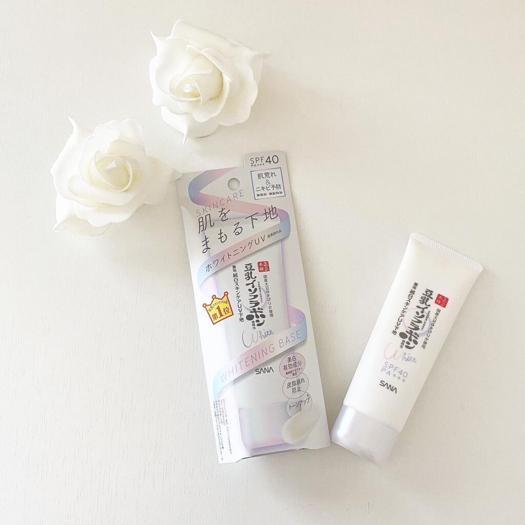 - <薬用美白スキンケアUV下地> 豆乳の美白スキンケアUV下地。肌荒れ&ニキビ予防しながら美白!メラニンの生成を抑え、シミ・そばかすを防ぎます。トーンアップ(メイク効果による)&皮脂崩れ防止。化粧水・美容液・乳液・クリーム・UVカット・化粧下地の1本6役。SPF40・PA+++。[販売名:サナ なめらか本舗 薬用美白スキンケアUV下地]