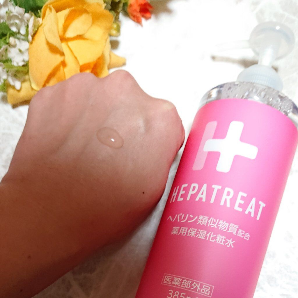 - ヘパトリートは保水有効成分のヘパリン類似物質と肌あれ有効成分のグリチルリチン酸ジカリウムを配合し、8つのフリーを実現。低刺激処方ながら高機能な化粧水です。さらに、薬用化粧水では珍しい大容量ポンプ(385mL)でとても使いやすく、赤ちゃんから大人まで、顔や全身の肌あれ・乾燥に使えます。 ■Wの有効成分 1.ヘパリン類似物質 顔・全身の乾燥を防ぐ 肌の乾燥による肌あれ/あれ性/皮膚を健やかに保つ/肌を整える/あせも/ひび/あかぎれ 2.グリチルリチン酸ジカリウム ニキビを防ぐ/肌をひきしめる/日やけ、雪やけ後のほてりを防ぐ/しもやけ/かみそりまけを防ぐ ■肌にやさしい低刺激処方<8つのフリー> 無香料/無着色/無鉱物油/無動物油/パラベンフリー/アルコールフリー/石油系界面活性剤フリー/シリコンフリー ※パッチテスト済み ※スティンギングテスト済み