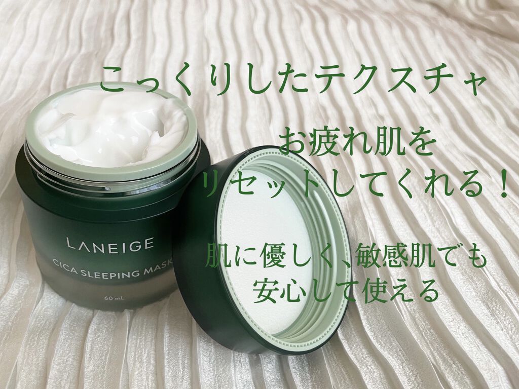 💚LANEIGEシカスリーピングマスクウォータースリーピングマスク💙どちらも低刺激処方🫧𓂃◌𓂂シカスリーピングマスク𓂃◌𓂂敏感に傾きがちな肌をすこやかな肌へ肌に溶け込むバームクリームテクスチャー肌に膜を張ったような不思議な質感でした!うるおい...