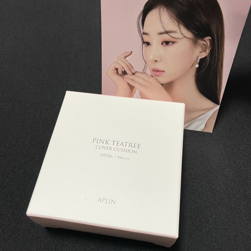 APLIN ピンクティーツリーカバークッション 21号ライトベージュ 2,490円(税込) 少量でよく伸びてハイカバー! 赤みやくすみをしっかりカバ一できるのに、厚塗り感のないなめらかな仕上がり♡ ハイカバーなのにナチュラルなツヤ感とサラッとしつつ、乾燥崩れしにくい仕上がりに感動します!!