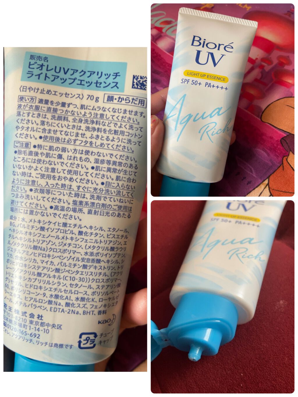 ~日焼け止め~今回はビオレUVアクアリッチライトアップエッセンスです🩷日焼け止めがなくなるペースが早くなり始めました朝と昼2回は塗る冬場は朝しか塗らないうめもちちです(;´д`)おさぼりさんですみません😣💦⤵顔にも身体にも使えます!石鹸で落と...
