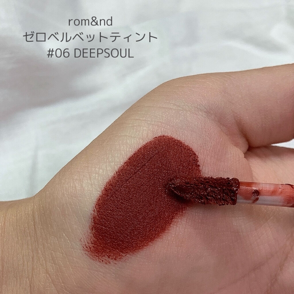 rom&ndのゼロベルベットティントはマットリップの中でも乾燥しにくく、内側で水分が保たれてるような質感です! 色持ちが◎です🙆🏻♀️︎🙆🏻♀️︎rom&ndの時点で色持ちが良いってことは周知の事実かもしれないですね、、 06のディープソウル(DEEP SOUL)はイエべ秋さんにおすすめのブラウンレッドカラーです!
