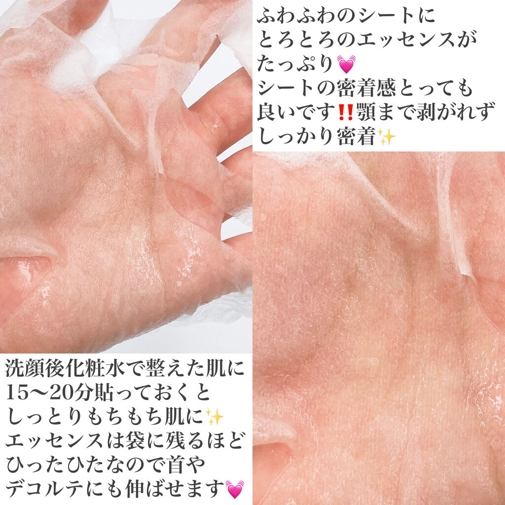| 乳液とクリームの間のような美容液がたっぷり入った柔らかいシートマスク。外した後は肌がツヤツヤ✨ | 詳細を見る | |