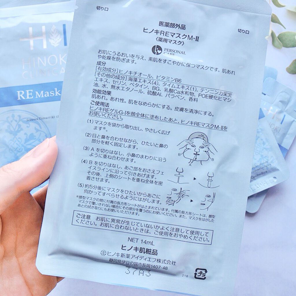 ヒノキには肌荒れやにきびを防ぎ、肌を整えたり皮膚を健やかに保つ効能効果があり日焼けや雪焼け後のほてりを防ぐ効果もあるのだそうです。重ための乳白色のゲルを塗ってからシートマスクを上から貼るタイプです。マスクは天然素材(キュフ゜ラ)を使用とありま...