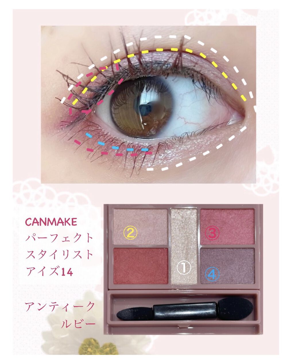 キャンメイクパーフェクトスタイリストアイズ14アンティークルビーなんで廃盤になっちゃったかなぁ。。。廃盤お気に入りアイシャドウお気に入りのアイシャドウなの右上のピンク色が可愛い♡左上の色も可愛い♡赤も可愛い♡赤色。。。使いにくいかな?って最初...