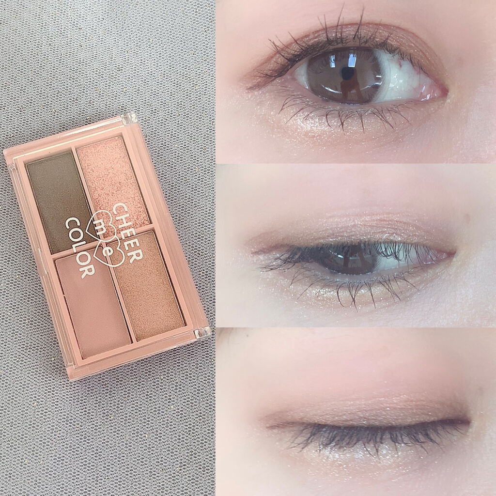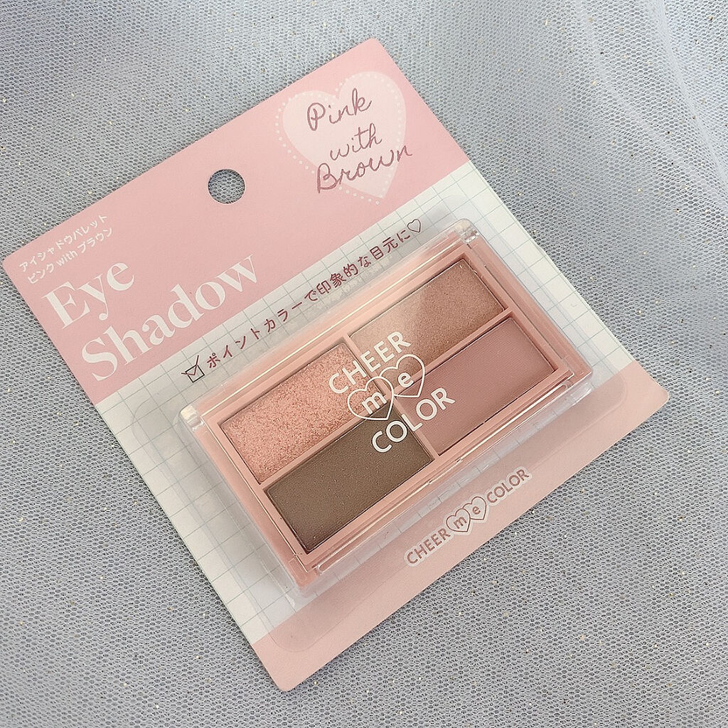 CHEERmeCOLORアイシャドウパレットアザレアコーラルダリアバージュマーガレットピンクセリアで買える110円の4色アイシャドウパレット。発色は良いけど粉質はややパサつく感じなのでアイシャドウベースは欲しいところ。残念ながらアイシャドウチ...
