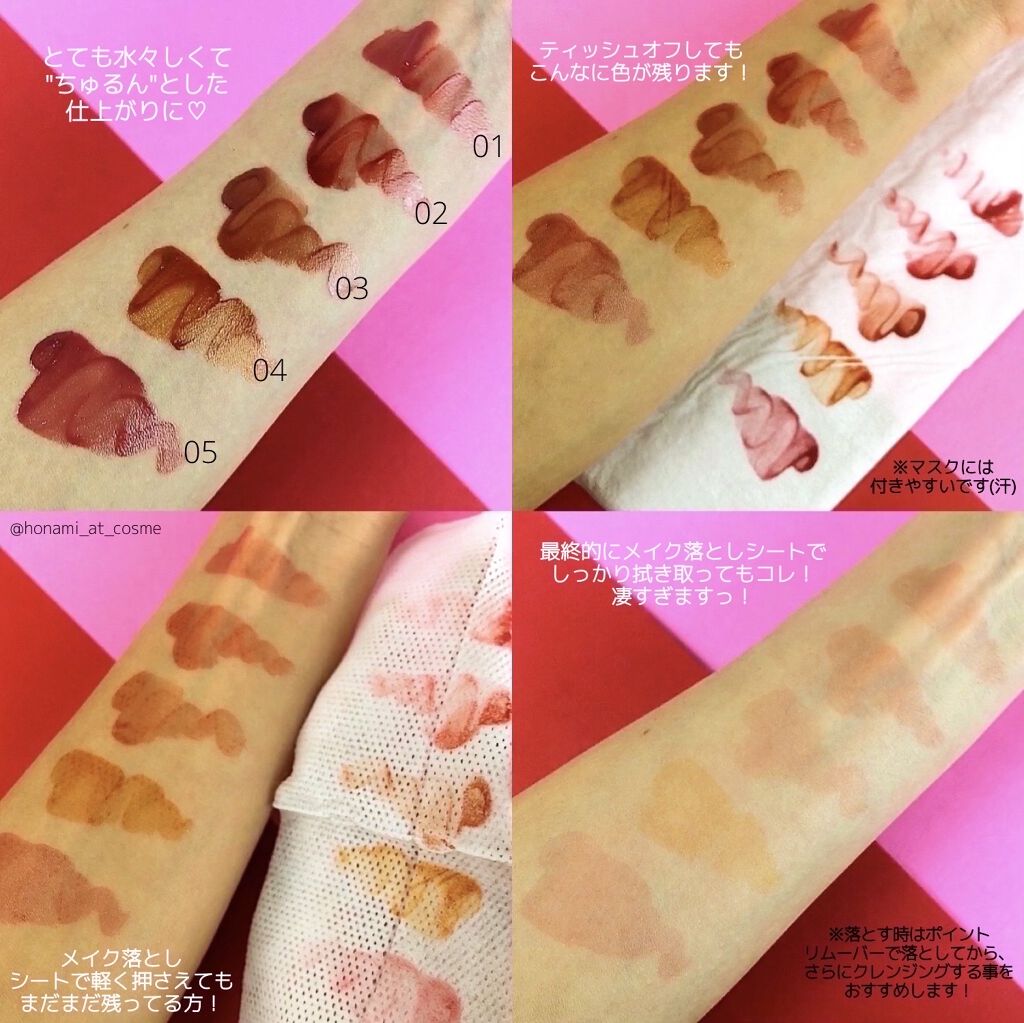 | 口紅・グロス・リップライナーランキング第40位 | 乾燥しにくく、艶感をキープしてくれて、ティント特有の色持ちも良く、ぷるっとしたジューシーな唇に仕上がります | 詳細を見る | |