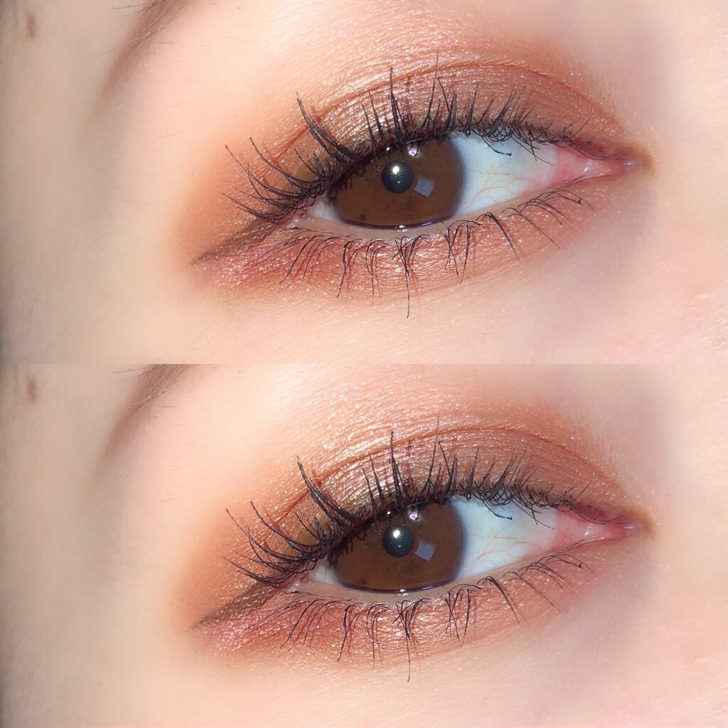よくパレットのなかで明るいカラーをベースにまぶたに広く塗ることが多いのですが、パール感のあるカラーを避ける🙆♀️! パール感たっぷりの明るいカラーは涙袋に使うぐらい光を集めてぷっくり見せてくれるので、まぶたに広く使うと腫れぼったく見えがち😓 目元を明るくみせてくれたり、次に使うアイシャドウをぼかしやすくしてくれるけど、すっ飛ばしてメインのカラーを塗っちゃう✊🏻❤️🔥 涙袋にはたっぷり塗ってぷっくり見せる🙆♀️💕 シルキースフレアイズのマットタイプはすごく優れているな〜と感じました☺️💗 赤やオレンジなどは、入れすぎると腫れぼったく見えやすいので、見せたいカラーは下まぶた目尻にのせて色をたのしむ♡♡ パール感なしの透けマットだけじゃ物足りない… そう感じさせない華やかなラメが左上に入っているので黒目上と涙袋にのせるとすごく可愛い仕上がりに😍! 厄介な左右差のお陰でマットアイシャドウが好きになりました😌💕