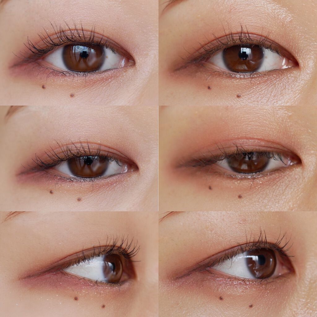 涙袋用のハイライトカラーは、アイボリー系、ベージュ系、オレンジ系の3色展開です。涙袋とハイライト以外にも大活躍です。特に新色の15番 サーモンベージュはオレンジ系なので青クマのコンシーラーとしても使えます🙆♀️ 陰影カラーは、薄めでナチュラルに仕上がるピーナッツベージュと、盛りたい日に大活躍しそうな少し濃いめのアーモンドベージュの2色展開になっています。 全色柔らかめなテクスチャで繊細な肌質である目元に負担をかけずにスルスルかけます.