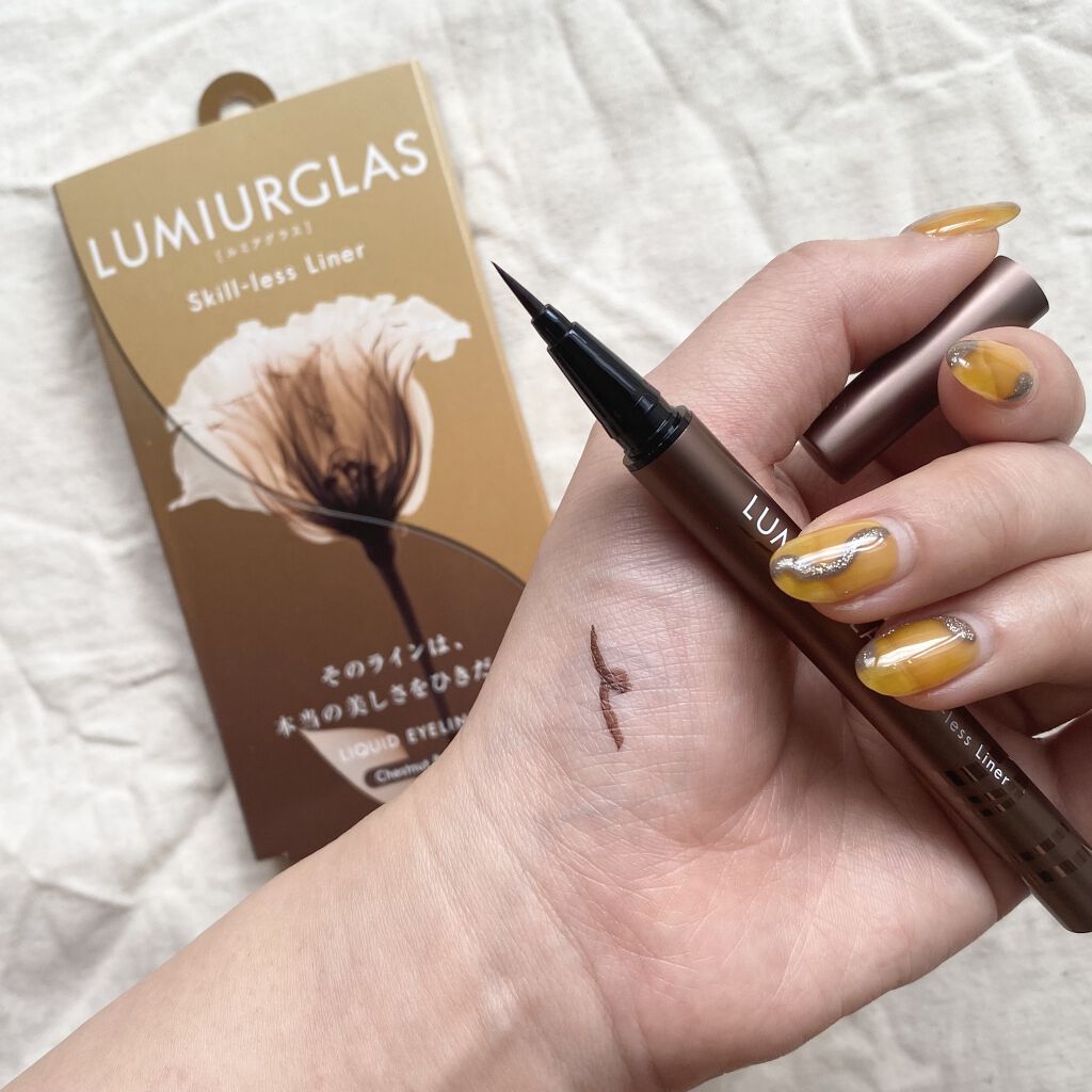 ルミアグラス#スキルレスライナー03チェスナットブラウン#ベルベットライナー03オリーブブラックスルスル線が引けて使いやすいよ。#LUMIURGLAS#ルミアグラス#アイライナー#プレゼント...