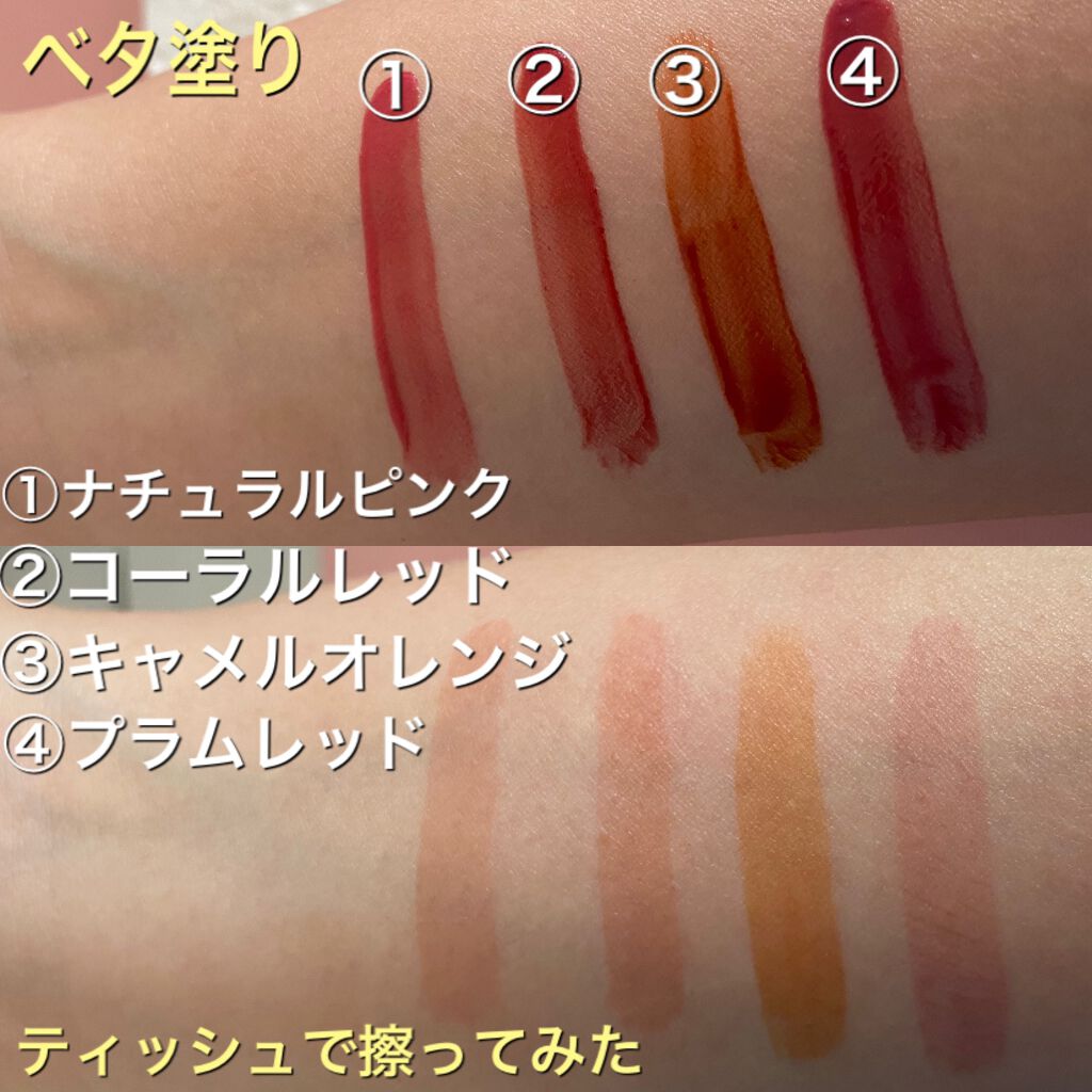 | リップティントランキング第3位 | 重ねて塗っても、ちゅるんと透け感が残って明るめカラーがとっても映える…💕色残りも◎ | 詳細を見る | ||