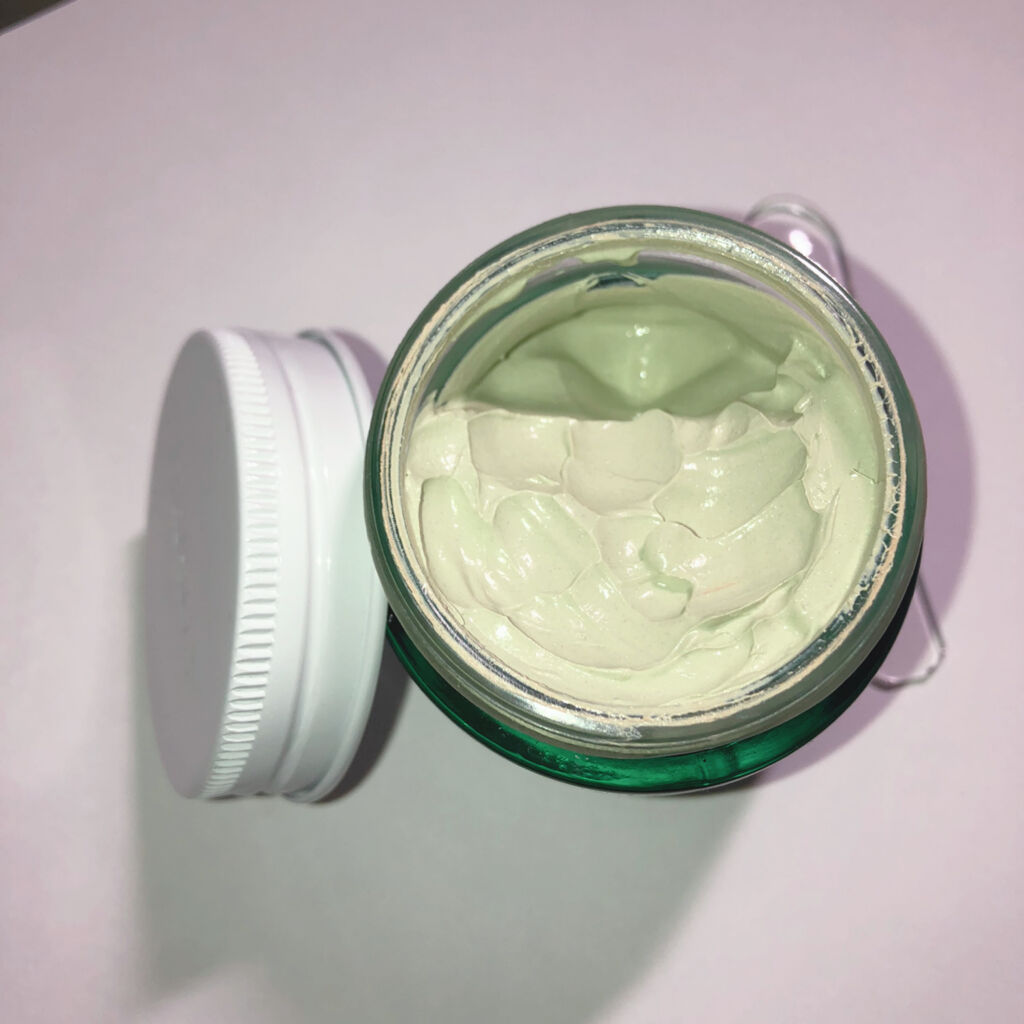 - 赤みをきちんとカバーするスキンケア兼用下地。緑色のクリームが肌でベージュ色に変化し、ニキビ跡やくすみをカバーします。