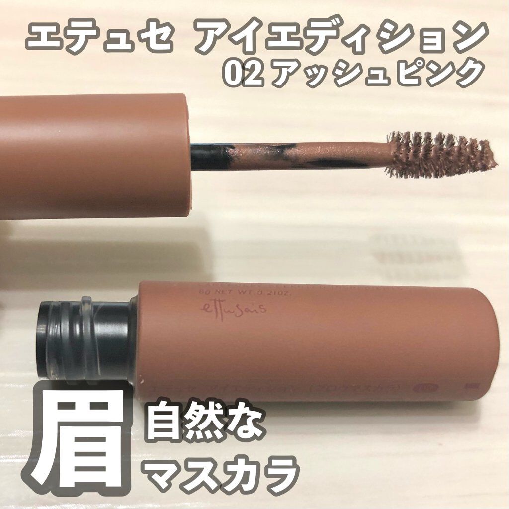 【#ettusais/#エテュセアイエディション#ブロウマスカラ】EX02.アッシュピンクブラシが小さく塗布しやすいアイブロウマスカラしっかり眉毛に付くのに、皮膚には付きにくくお気に入りです。02はくすみ系のアッシュピンクだから自眉の黒さを緩...