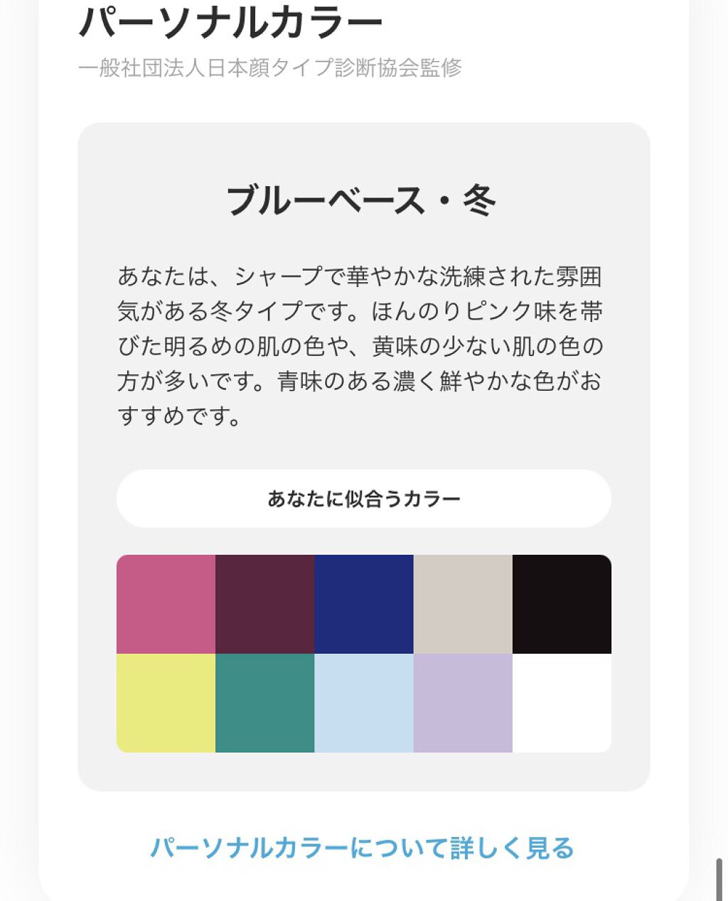 無料で送ってもらえて、ゾゾのアプリ上で肌のトーンやパーソナルカラーが計測できます。 イエベ春とブルベ夏、違う結果がでました。 自分の肌の色似合うベースメイクの色番まで出してくれるので色選びの参考になります。