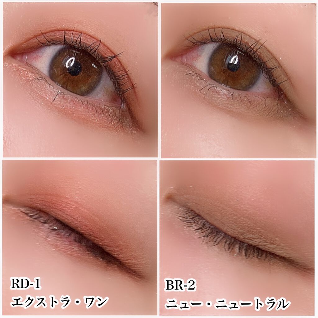 - 肌影カラーを眉下に広く入れて隠れた立体感を掘り起こす骨格陰影アイシャドウ。 見たまま発色で肌なじみのいい、軽いつけ心地の乾式(肌影カラー・立体感カラー)とツヤ・ラメ感の輝きを美しく引き立たせる湿式(ダークカラー・3Dハイライト)の2つの製法を組み合わせ、マット~パールまで4つの質感をセット。 <眉・シェーディング・ハイライト>のポイント使いにもおすすめ! ※RD-1、BR-2はマツモトキヨシ・数量限定