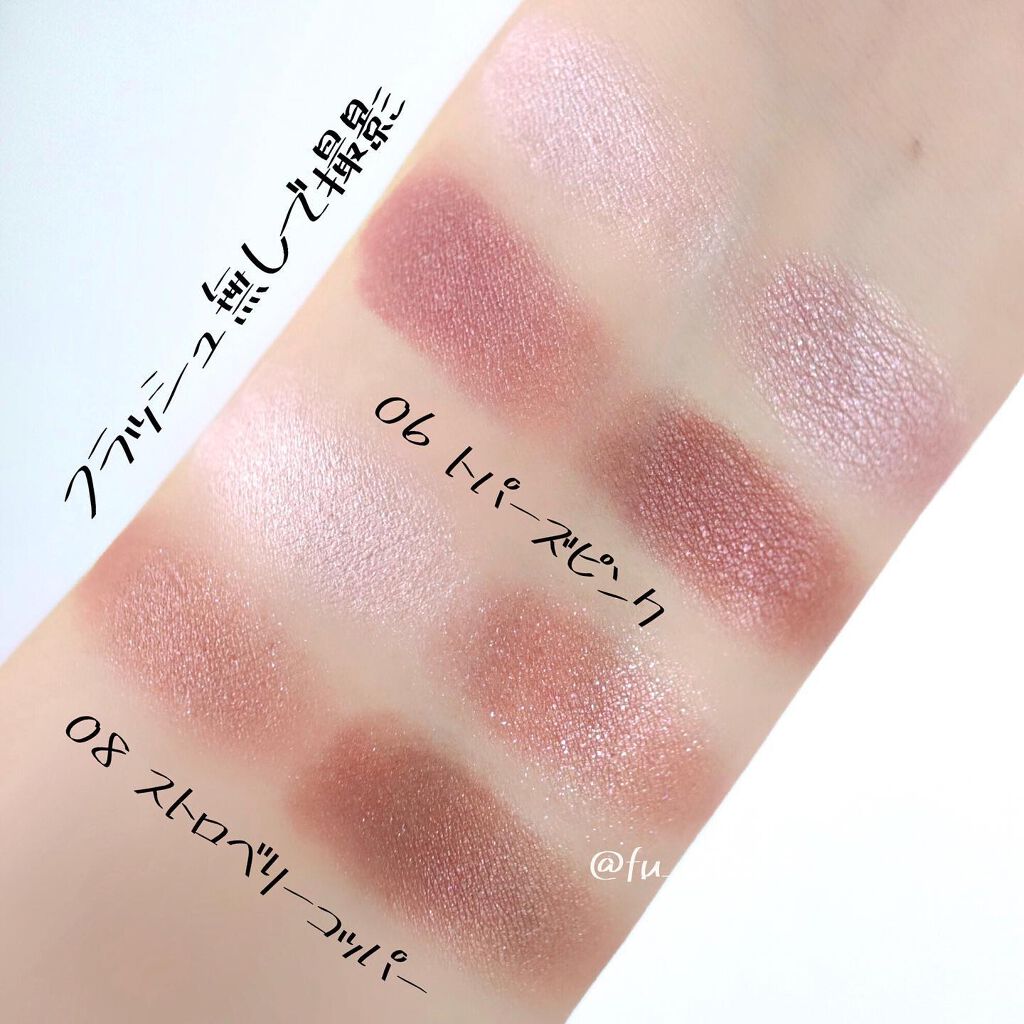 - <06 トパーズピンク> 合成フルオロフロゴパイト、タルク、アルミナ、ジフェニルシロキシフェニルトリメチコン、水添ポリデセン、硫酸Ba、(イソステアリン酸ポリグリセリル-2/ダイマージリノール酸)コポリマー、ジメチコン、ジステアリン酸Al、メチルパラベン、ステアリン酸Mg、シリカ、トコフェロール、ホホバ種子油、アンズ核油、BG、水、ヒアルロン酸Na、カミツレ花エキス、マイカ、酸化鉄、酸化チタン、ホウケイ酸(Ca/Al)、グンジョウ、酸化スズ、赤226 <07 ネクタリンオレンジ> 合成フルオロフロゴパイト、アルミナ、タルク、ジフェニルシロキシフェニルトリメチコン、水添ポリデセン、硫酸Ba、(イソステアリン酸ポリグリセリル-2/ダイマージリノール酸)コポリマー、ジメチコン、ジステアリン酸Al、メチルパラベン、ステアリン酸Mg、シリカ、トコフェロール、ホホバ種子油、アンズ核油、BG、水、ヒアルロン酸Na、カミツレ花エキス、マイカ、酸化チタン、酸化鉄、ホウケイ酸(Ca/Al)、酸化スズ、赤226、グンジョウ <10 スウィートラブレター> 合成フルオロフロゴパイト、アルミナ、タルク、ジフェニルシロキシフェニルトリメチコン、水添ポリデセン、(イソステアリン酸ポリグリセリル-2/ダイマージリノール酸)コポリマー、ジメチコン、硫酸Ba、ジステアリン酸Al、シリカ、メチルパラベン、ステアリン酸Mg、トコフェロール、ホホバ種子油、アンズ核油、BG、水、ヒアルロン酸Na、カミツレ花エキス、マイカ、酸化チタン、酸化鉄、ホウケイ酸(Ca/Al)、グンジョウ、酸化スズ、赤226 <12 モーニングビオラ> 合成フルオロフロゴパイト、タルク、ジフェニルシロキシフェニルトリメチコン、アルミナ、水添ポリデセン、硫酸Ba、(イソステアリン酸ポリグリセリル-2/ダイマージリノール酸)コポリマー、ジメチコン、ジステアリン酸Al、メチルパラベン、シリカ、ステアリン酸Mg、トコフェロール、水酸化Al、ホホバ種子油、アンズ核油、BG、水、ヒアルロン酸Na、カミツレ花エキス、ホウケイ酸(Ca/Al)、マイカ、酸化チタン、グンジョウ、酸化鉄、赤226、酸化スズ、コンジョウ、青404 <04 サンセットデート> タルク、合成フルオロフロゴパイト、アルミナ、ジフェニルシロキシフェニルトリメチコン、水添ポリデセン、硫酸Ba、(イソステアリン酸ポリグリセリル-2/ダイマージリノール酸)コポリマー、ジメチコン、ジステアリン酸Al、メチルパラベン、シリカ、ステアリン酸Mg、トコフェロール、ホホバ種子油、アンズ核油、BG、水、ヒアルロン酸Na、カミツレ花エキス、マイカ、酸化鉄、酸化チタン、グンジョウ、ホウケイ酸(Ca/Al)、酸化スズ、赤226 <06 トパーズピンク(桜の限定パッケージ)> 合成フルオロフロゴパイト、タルク、アルミナ、ジフェニルシロキシフェニルトリメチコン、水添ポリデセン、硫酸Ba、(イソステアリン酸ポリグリセリル-2/ダイマージリノール酸)コポリマー、ジメチコン、ジステアリン酸Al、メチルパラベン、ステアリン酸Mg、シリカ、トコフェロール、ホホバ種子油、アンズ核油、BG、水、ヒアルロン酸Na、カミツレ花エキス、マイカ、酸化鉄、酸化チタン、ホウケイ酸(Ca/Al)、グンジョウ、酸化スズ、赤226 <10 スウィートラブレター(桜の限定パッケージ)> 合成フルオロフロゴパイト、アルミナ、タルク、ジフェニルシロキシフェニルトリメチコン、水添ポリデセン、(イソステアリン酸ポリグリセリル-2/ダイマージリノール酸)コポリマー、ジメチコン、硫酸Ba、ジステアリン酸Al、シリカ、メチルパラベン、ステアリン酸Mg、トコフェロール、ホホバ種子油、アンズ核油、BG、水、ヒアルロン酸Na、カミツレ花エキス、マイカ、酸化チタン、酸化鉄、ホウケイ酸(Ca/Al)、グンジョウ、酸化スズ、赤226