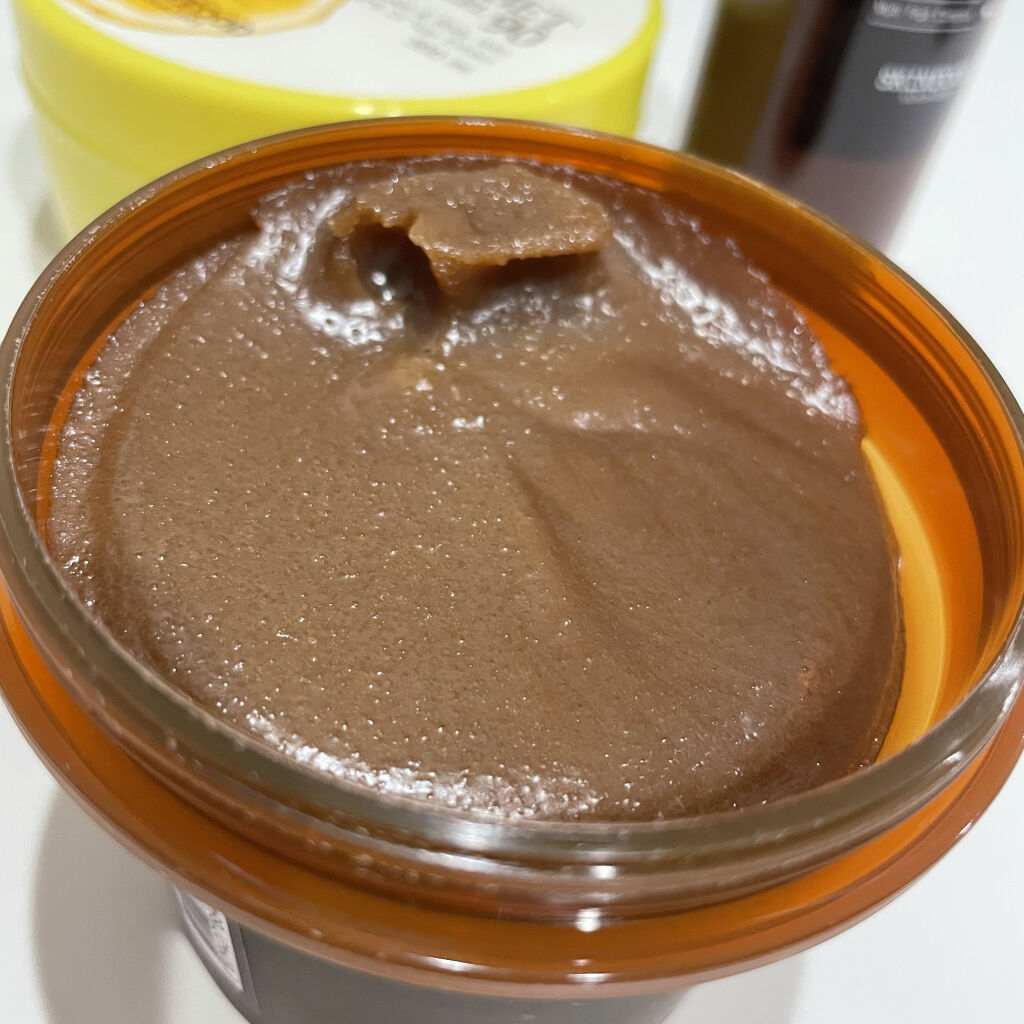 スキンフードのベストセラー 私が初めて購入品した ブラックシュガースクラブ🤎 古い角質と皮脂ケア ✰2種類あるブラックシュガースクラブのうち、エッセンシャルオイル※配合&スクラブが細かくなり、比較的マイルドなテクスチャー 顔だけでなくボディにも使えるマルチスクラブ 10分ほど顔にのせた後、やさしく洗い流すと、なめらかな感触&しっとり仕上げ