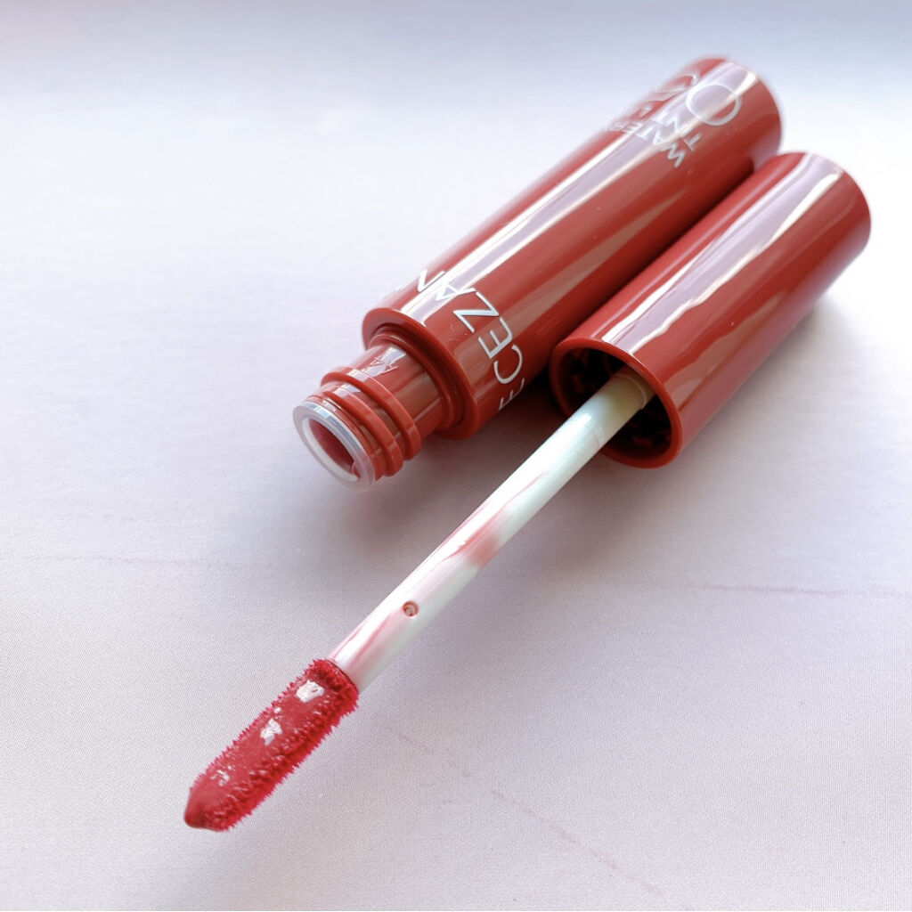 - ツヤ×色×潤いをキープする、セザンヌの新濡れツヤリップ みずみずしい濡れツヤ感ある仕上がりで、発色とツヤが長続きするティントリップです。ティントの発色を透明のベールで覆うリップコートのような処方で、ツヤ感と色をキープします。さらに、唇表面のべたつきは少なく、しっとり潤うオイルinウォーター処方を採用しています。
