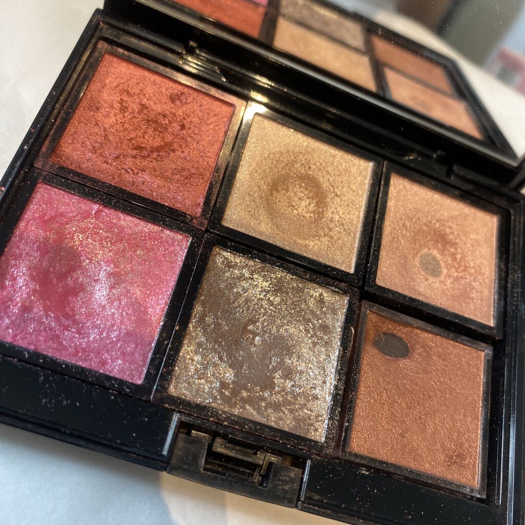 まずパケが昔あったおもちゃのコスメみたいで可愛い! でも中身はさすがのKOSEさん。 色味がめっちゃ可愛い!イエベさんにオススメのカラーです〰️❕ 粉質は柔らかくて発色は優しめ。 基本的に指でのせてたんですけど、ガッツリ色がのる訳じゃないから初心者さんでも失敗しにくいと思います🐰💓 真ん中のニュアンスカラーがマットだから肌なじみがめちゃくちゃいい。 締め色は思ったほど暗くないのでそんな派手にもならない🤟🏻全然仕事の時でも使ってたアイカラーです🥺 そしてこちらもアイライナー同様目元をケアする美容成分配合でメイク中もスキンケアしてくれるみたい。最高😂