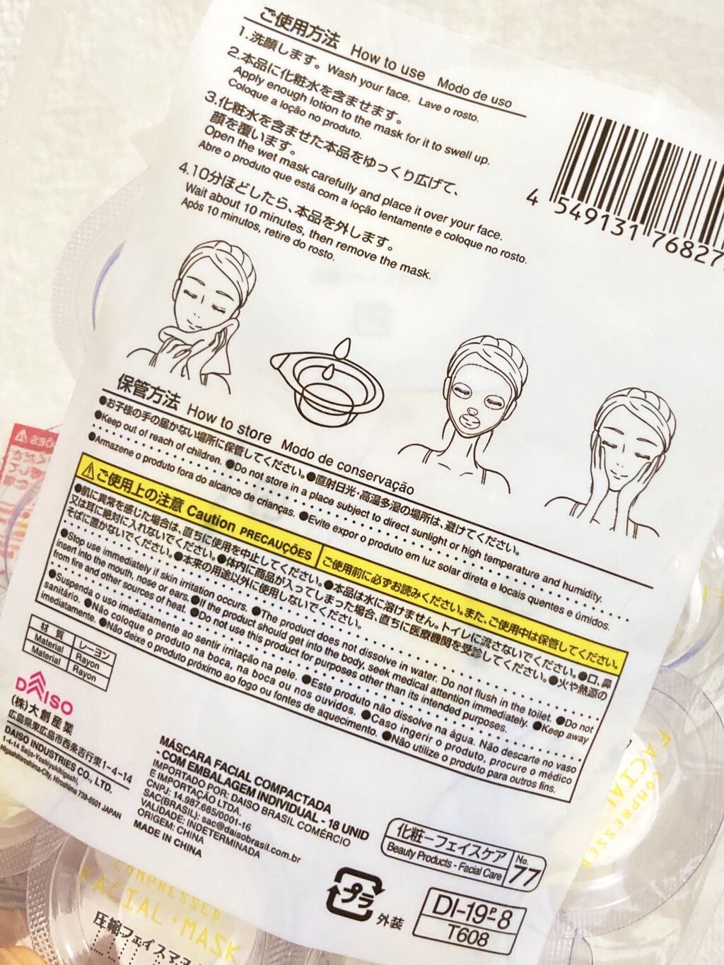 商品詳細情報DAISO 圧縮フェイスマスク 個包装カップ付き