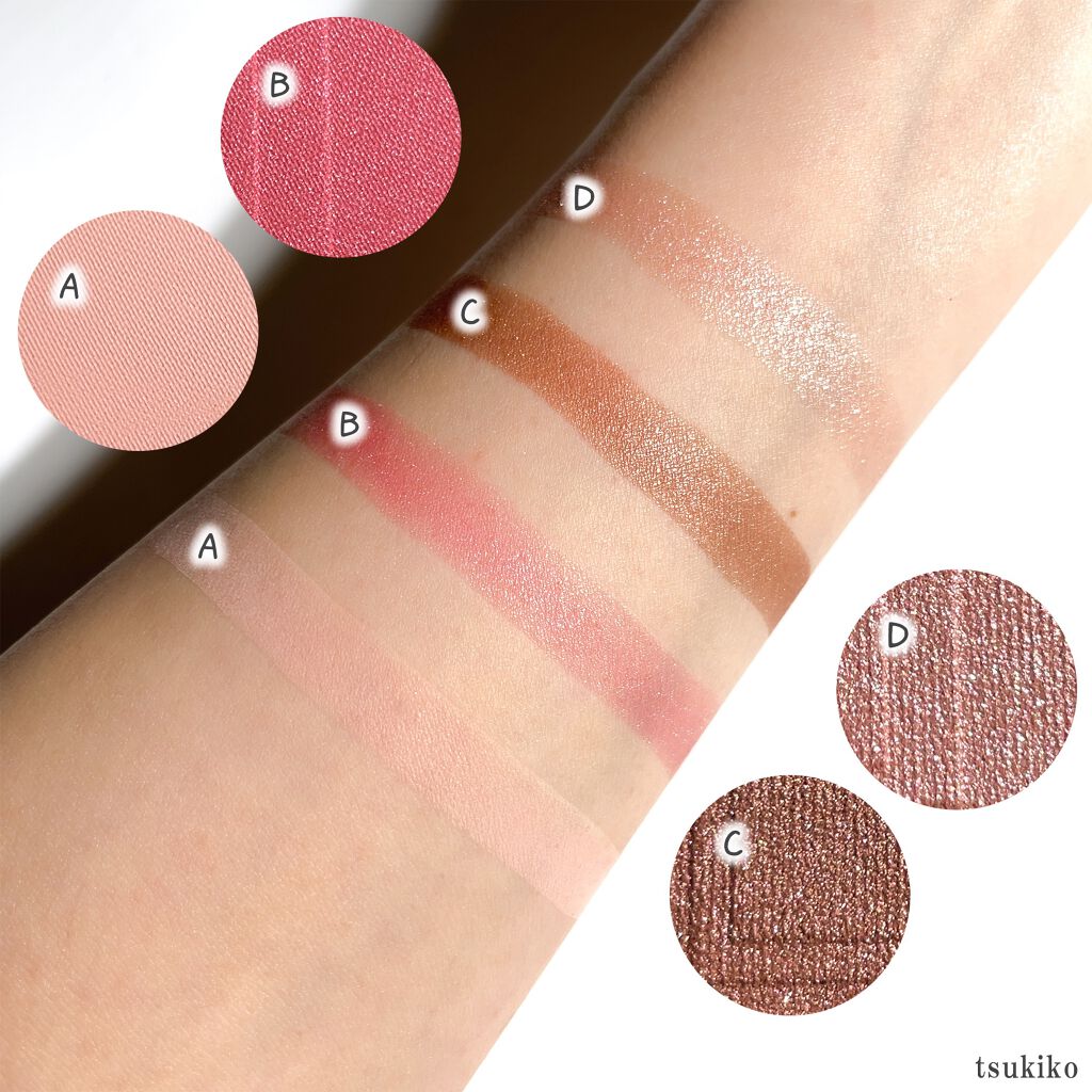 - 肌影カラーを眉下に広く入れて隠れた立体感を掘り起こす骨格陰影アイシャドウ。 見たまま発色で肌なじみのいい、軽いつけ心地の乾式(肌影カラー・立体感カラー)とツヤ・ラメ感の輝きを美しく引き立たせる湿式(ダークカラー・3Dハイライト)の2つの製法を組み合わせ、マット~パールまで4つの質感をセット。 <眉・シェーディング・ハイライト>のポイント使いにもおすすめ! ※RD-1、BR-2はマツモトキヨシ・数量限定