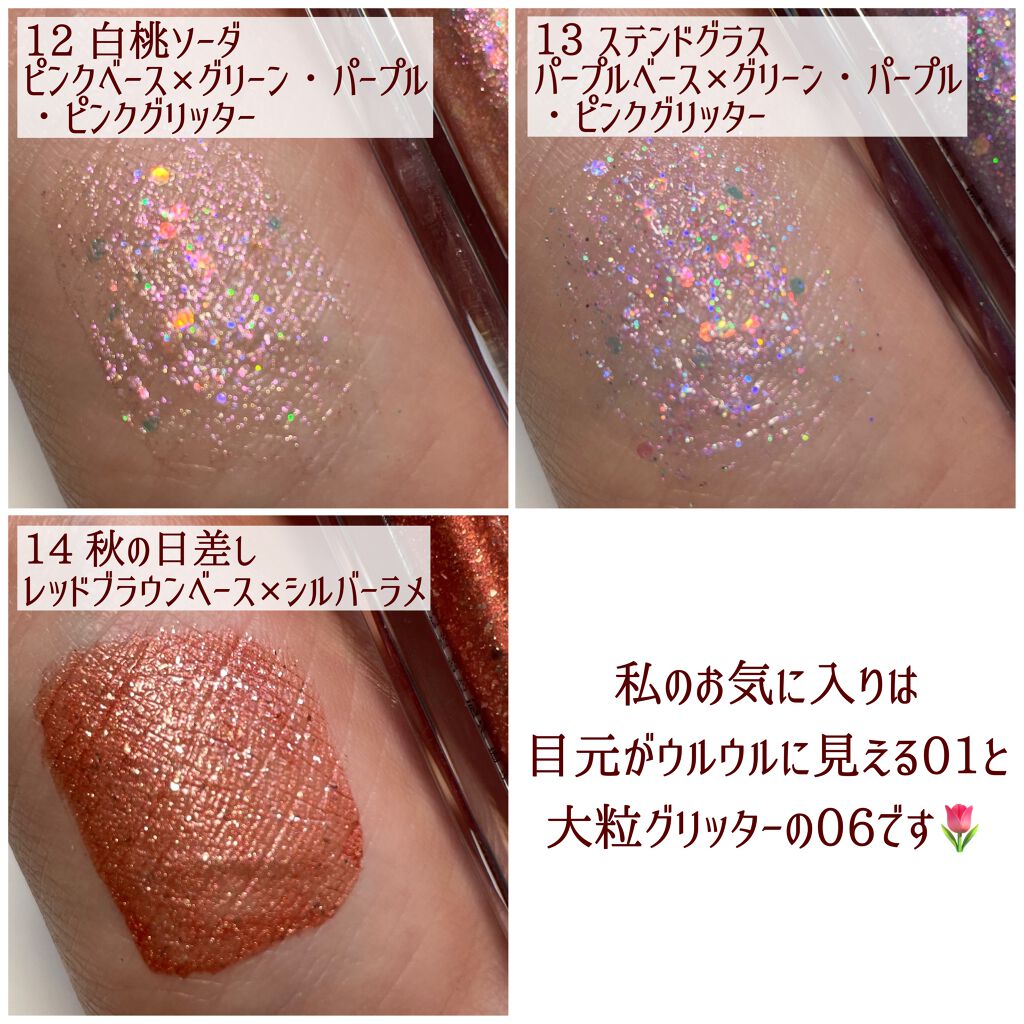 | リキッドアイシャドウランキング第2位 | 中に入っている偏光オーロララメの大きさがまた絶妙で、そのまま塗って使っても良いんだけど瞼にラメを乗せる感じで使ってもキラキラで可愛いよ | 詳細を見る | |