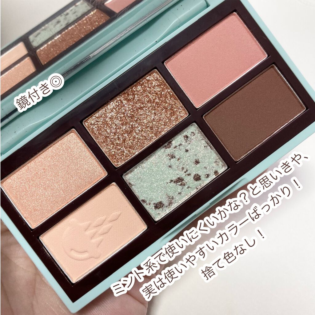 - チャーミングに仕上げるスペシャルキット チョコミントのように甘く爽やかな色合いのアイシャドウパレットとキュートなブラシがキットに。思わずクセになっちゃう絶妙なハーモニーでまぶたをチャーミングに色づけて。可愛らしさを印象づけるピンクコーラルからカカオのようにほろ苦いブラウンまで、捨て色なしの6色であなたもチョコミントの虜に…!