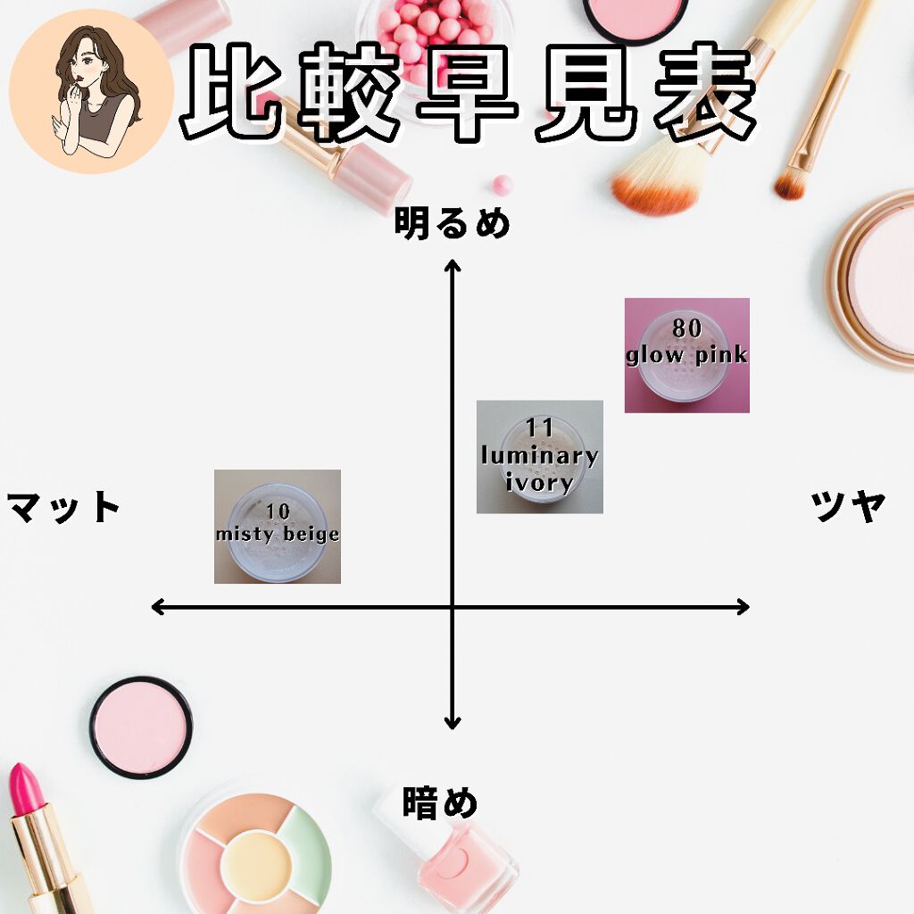 - <00 trans lucent> (ビニルジメチコン/メチコンシルセスキオキサン)クロスポリマー、合成金雲母、窒化ホウ素、タルク、シリカ、ダマスクバラ花エキス、マツリカ花エキス、レモン果実エキス、BG、TEA、エタノール、シルク、ジフェニルシロキシフェニルトリメチコン、ジメチコン、スクワラン、ラウロイルリシン、含水シリカ、水、水酸化Al、水添レシチン、麻セルロース、クロルフェネシン、香料、マイカ、酸化チタン、酸化亜鉛、酸化鉄 <10 misty beige> タルク、(ビニルジメチコン/メチコンシルセスキオキサン)クロスポリマー、メタクリル酸メチルクロスポリマー、ラウロイルリシン、合成金雲母、シリカ、窒化ホウ素、ダマスクバラ花エキス、マツリカ花エキス、レモン果実エキス、BG、TEA、エタノール、シルク、ジフェニルシロキシフェニルトリメチコン、ジメチコン、スクワラン、セルロース、含水シリカ、水、水酸化Al、水添レシチン、麻セルロース、クロルフェネシン、香料、マイカ、酸化チタン、酸化亜鉛、酸化鉄 <101 horizon> (ビニルジメチコン/メチコンシルセスキオキサン)クロスポリマー、合成金雲母、窒化ホウ素、タルク、シリカ、ダマスクバラ花エキス、マツリカ花エキス、レモン果実エキス、BG、TEA、エタノール、シルク、ジフェニルシロキシフェニルトリメチコン、ジメチコン、スクワラン、ラウロイルリシン、含水シリカ、水、水酸化Al、水添レシチン、麻セルロース、クロルフェネシン、香料、マイカ、酸化チタン、酸化亜鉛、酸化鉄 <108 before evening> (ビニルジメチコン/メチコンシルセスキオキサン)クロスポリマー、合成金雲母、窒化ホウ素、タルク、シリカ、ダマスクバラ花エキス、マツリカ花エキス、レモン果実エキス、BG、TEA、エタノール、シルク、ジフェニルシロキシフェニルトリメチコン、ジメチコン、スクワラン、ラウロイルリシン、含水シリカ、水、水酸化Al、水添レシチン、麻セルロース、クロルフェネシン、香料、グンジョウ、マイカ、酸化チタン、酸化亜鉛、酸化鉄、赤202 <11 luminary ivory> タルク、(ビニルジメチコン/メチコンシルセスキオキサン)クロスポリマー、メタクリル酸メチルクロスポリマー、ラウロイルリシン、合成金雲母、シリカ、窒化ホウ素、ダマスクバラ花エキス、マツリカ花エキス、レモン果実エキス、BG、TEA、エタノール、シルク、ジフェニルシロキシフェニルトリメチコン、ジメチコン、スクワラン、セルロース、含水シリカ、酸化スズ、水、水酸化Al、水添レシチン、麻セルロース、クロルフェネシン、香料、マイカ、酸化チタン、酸化亜鉛、酸化鉄 <12 lucent beige> タルク、(ビニルジメチコン/メチコンシルセスキオキサン)クロスポリマー、メタクリル酸メチルクロスポリマー、ラウロイルリシン、合成金雲母、シリカ、窒化ホウ素、ダマスクバラ花エキス、マツリカ花エキス、レモン果実エキス、BG、TEA、エタノール、シルク、ジフェニルシロキシフェニルトリメチコン、ジメチコン、スクワラン、セルロース、含水シリカ、水、水酸化Al、水添レシチン、麻セルロース、クロルフェネシン、香料、マイカ、酸化チタン、酸化亜鉛、酸化鉄 <30 shiny terra cotta> タルク、(ビニルジメチコン/メチコンシルセスキオキサン)クロスポリマー、メタクリル酸メチルクロスポリマー、ラウロイルリシン、合成金雲母、シリカ、窒化ホウ素、ダマスクバラ花エキス、マツリカ花エキス、レモン果実エキス、BG、TEA、エタノール、シルク、ジフェニルシロキシフェニルトリメチコン、ジメチコン、スクワラン、セルロース、含水シリカ、水、水酸化Al、水添レシチン、麻セルロース、クロルフェネシン、香料、マイカ、酸化チタン、酸化亜鉛、酸化鉄 <80 glow pink> タルク、(ビニルジメチコン/メチコンシルセスキオキサン)クロスポリマー、メタクリル酸メチルクロスポリマー、ラウロイルリシン、合成金雲母、シリカ、窒化ホウ素、ダマスクバラ花エキス、マツリカ花エキス、レモン果実エキス、BG、TEA、エタノール、シルク、ジフェニルシロキシフェニルトリメチコン、ジメチコン、スクワラン、セルロース、含水シリカ、酸化スズ、水、水酸化Al、水添レシチン、麻セルロース、クロルフェネシン、香料、グンジョウ、マイカ、酸化チタン、酸化亜鉛、酸化鉄、赤226
