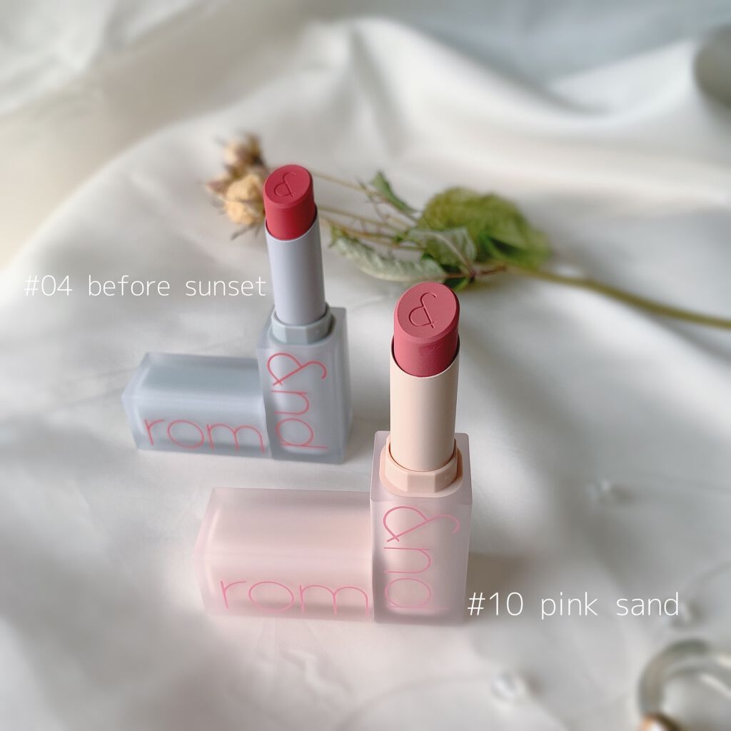 [rom&nd]ZEROMATTELIPSTICK#04と#10レポ▽めちゃくちゃ可愛い……色味もパッケージもかわいすぎるんよ……きゅんです……今回はブルベ向けカラーの2色買ってみた!手に塗った感じつけ心地軽いし、ティントじゃないのに色残り結...