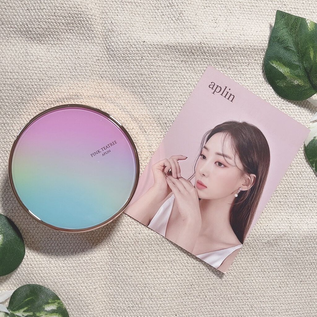 APLIN ピンクティーツリーカバークッション 21号ライトベージュ 2,490円(税込) 少量でよく伸びてハイカバー! 赤みやくすみをしっかりカバ一できるのに、厚塗り感のないなめらかな仕上がり♡ ハイカバーなのにナチュラルなツヤ感とサラッとしつつ、乾燥崩れしにくい仕上がりに感動します!!