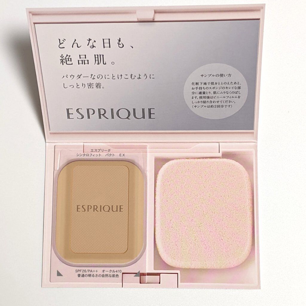 ※2024年使用品ファンデ(パウダー)・商品名ESPRIQUE(エスプリーク)シンクロフィットパクトEXオークル410サンプル毎日のようにファンデ使ってるとちょっと毛穴詰まりやすくなったような気が塗ってる感はあるけど自然な方なのかな粉浮いてく...