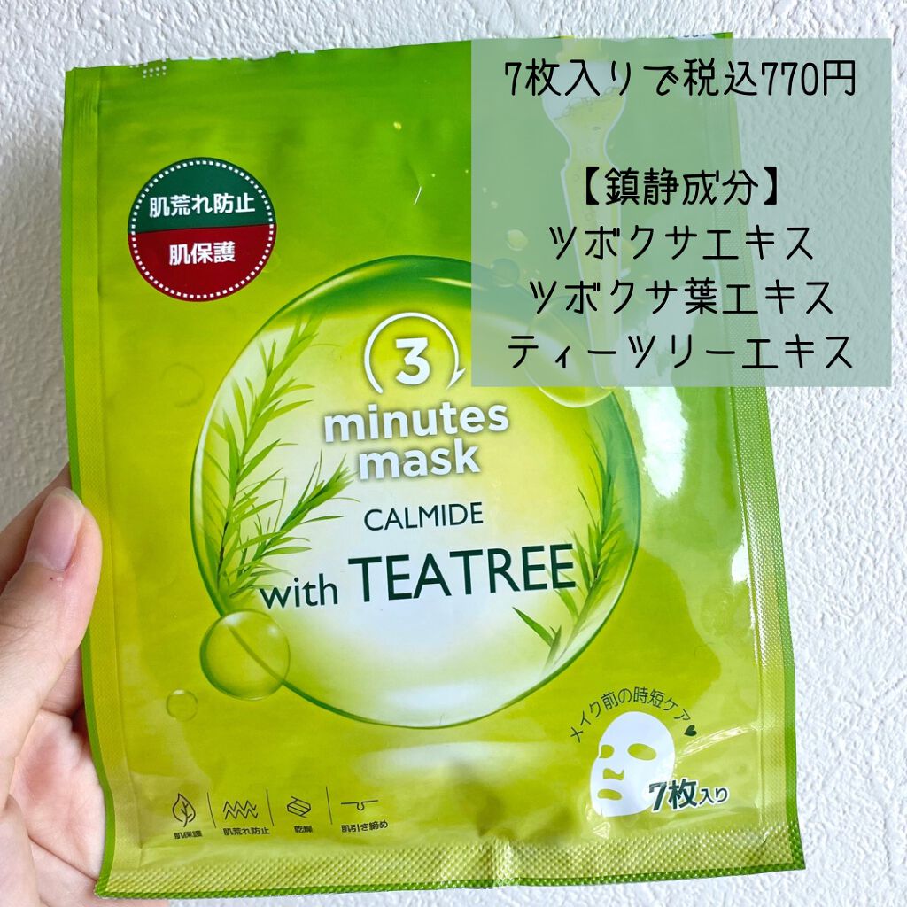 MEDIHEAL3ミニッツマスク:カーマイドwithティーツリー¥770生理や花粉が過ぎても肌の調子が上向かないな〜と思って購入。メディヒールのティーツリーはちょくちょく使っていたので、メディヒールの緑っぽいパッケージなら…と思って手を伸ばし...
