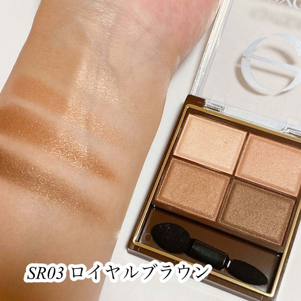 - 【ポイント】 1.失敗しらずのブラウンベースの4色パレット!簡単にグラデーションを実現。 2.しっとりリッチな質感!するする伸びて粉飛びもなく目元の乾燥も防ぎます。 3.上品な輝きの繊維パール+金パールを贅沢に配合。ギラつかない大人のツヤを演出。 <SR01'23・SR03'23・SR06'23・SR11'23(限定デザイン)> 実力派グラデアイシャドウからデジタルアートをあしらった限定デザイン登場。 しっとりリッチな密着感。肌のなじみの良い実力派グラデアイシャドウ。