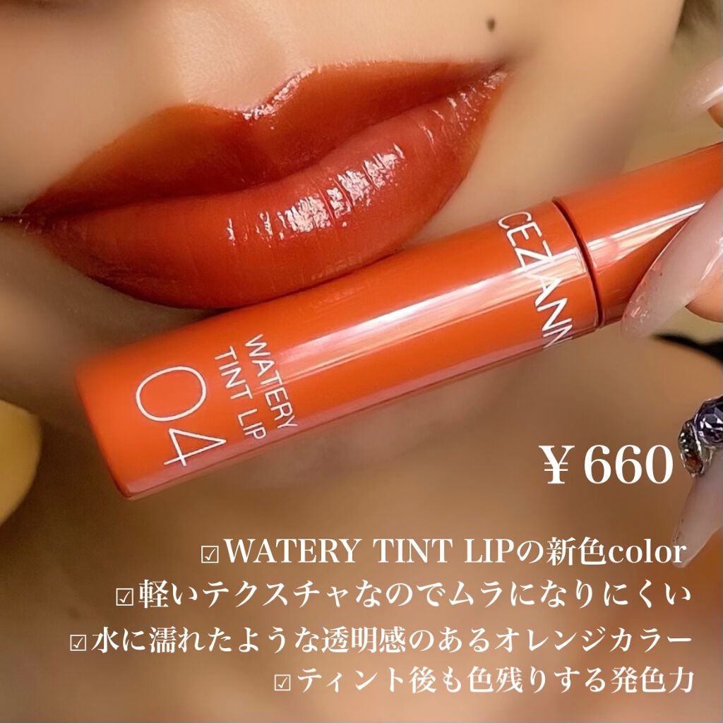 - ツヤ×色×潤いをキープする、セザンヌの新濡れツヤリップ みずみずしい濡れツヤ感ある仕上がりで、発色とツヤが長続きするティントリップです。ティントの発色を透明のベールで覆うリップコートのような処方で、ツヤ感と色をキープします。さらに、唇表面のべたつきは少なく、しっとり潤うオイルinウォーター処方を採用しています。