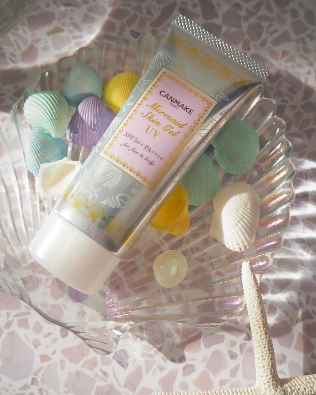 - パシャッと爽快!人魚姫気分♥化粧水感覚で使えるUVジェル 国内最強レベルのUVカット効果で紫外線から肌を守ります。 肌にのばすとパシャッとはじける水感ジェルでみずみずしく軽い仕上がり。 顔だけでなく全身にも使えます。 洗顔後、これ1本でスキンケア・保湿下地・UVカット下地としてご使用いただけます。 ※2~3時間ごとにこまめに塗り直しをしてください。 また、肌をタオル等で拭いた際も塗り直しを推奨いたします。