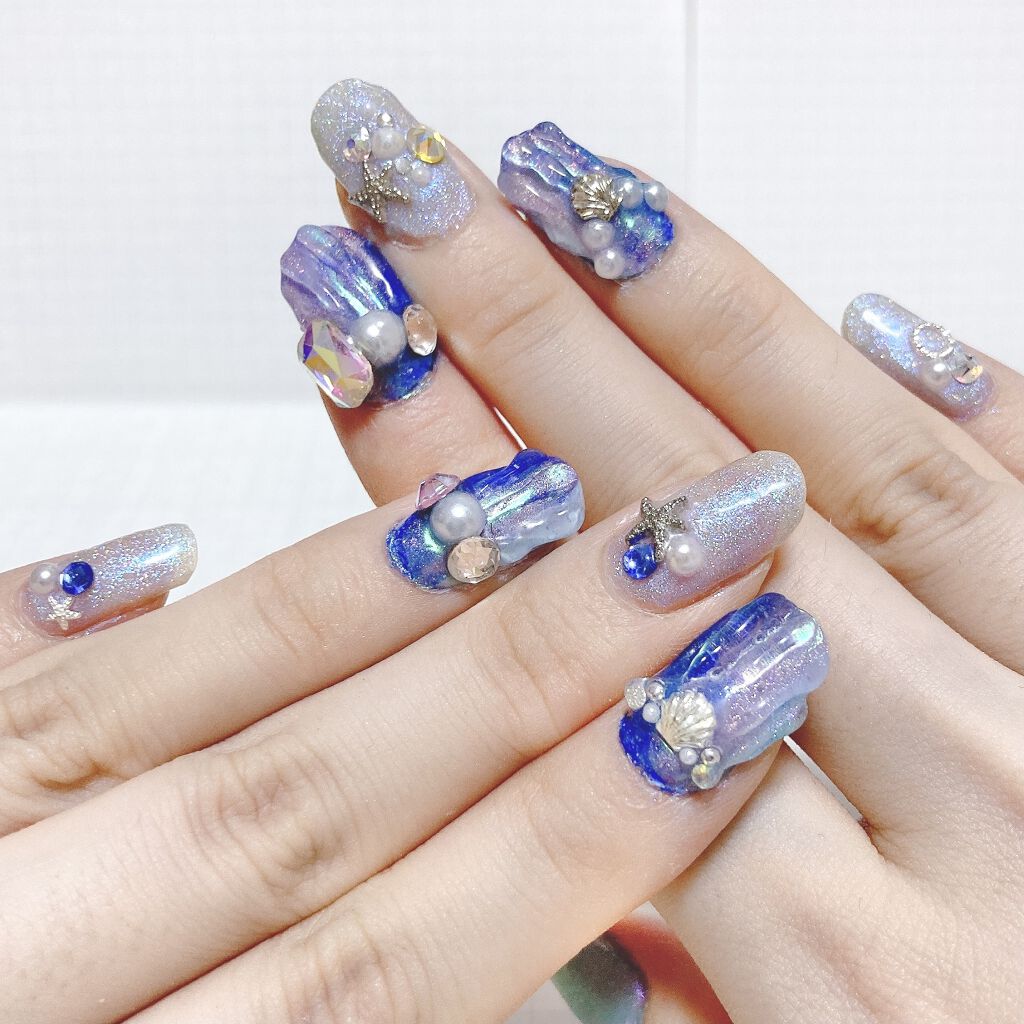 マーメイドネイル🧜♀️人魚のうろこネイル(薬指)と、ラグーンネイル(人差し指、小指)やりたかったネイルに初挑戦しました💕人魚のうろこネイルは要練習ですね💦*人魚のうろこネイル:1.好きなカラージェルを塗って硬化(ピンクと紫で横にグラデしまし...